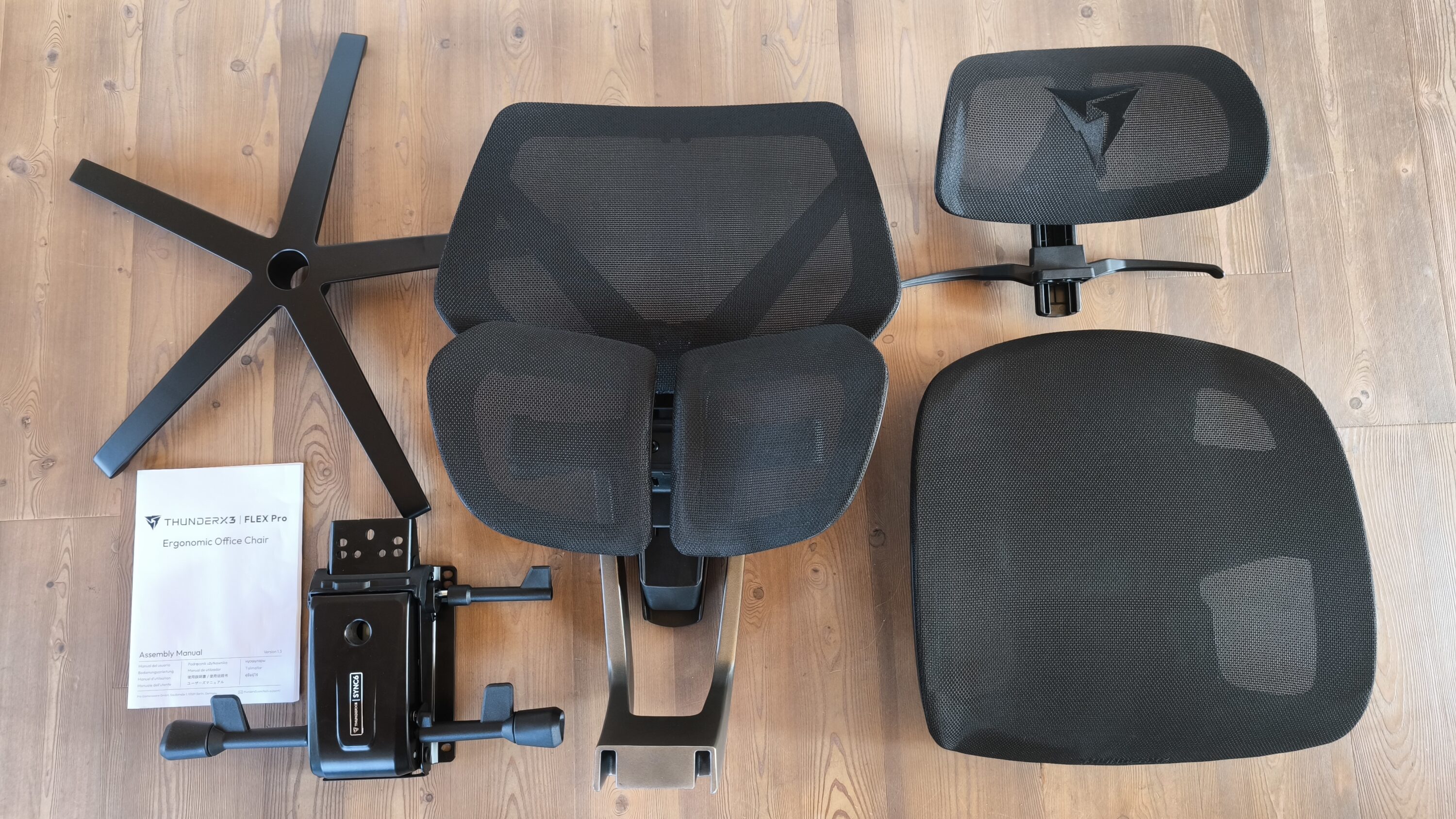 The assembly instructions are divided into 19 steps. Sounds like a lot? It is, and of course we can give the all-clear straight away. The actual assembly only involves five assembly steps, while the following doings are more about the locking and tilting options of the ThunderX3 FLEX Pro | MESH. From unpacking to assembly, a single person should still allow around 30 minutes to a comfortable hour. However, if there are two of you, the assembly of the ThunderX3 FLEX Pro | MESH is guaranteed to take considerably less time.