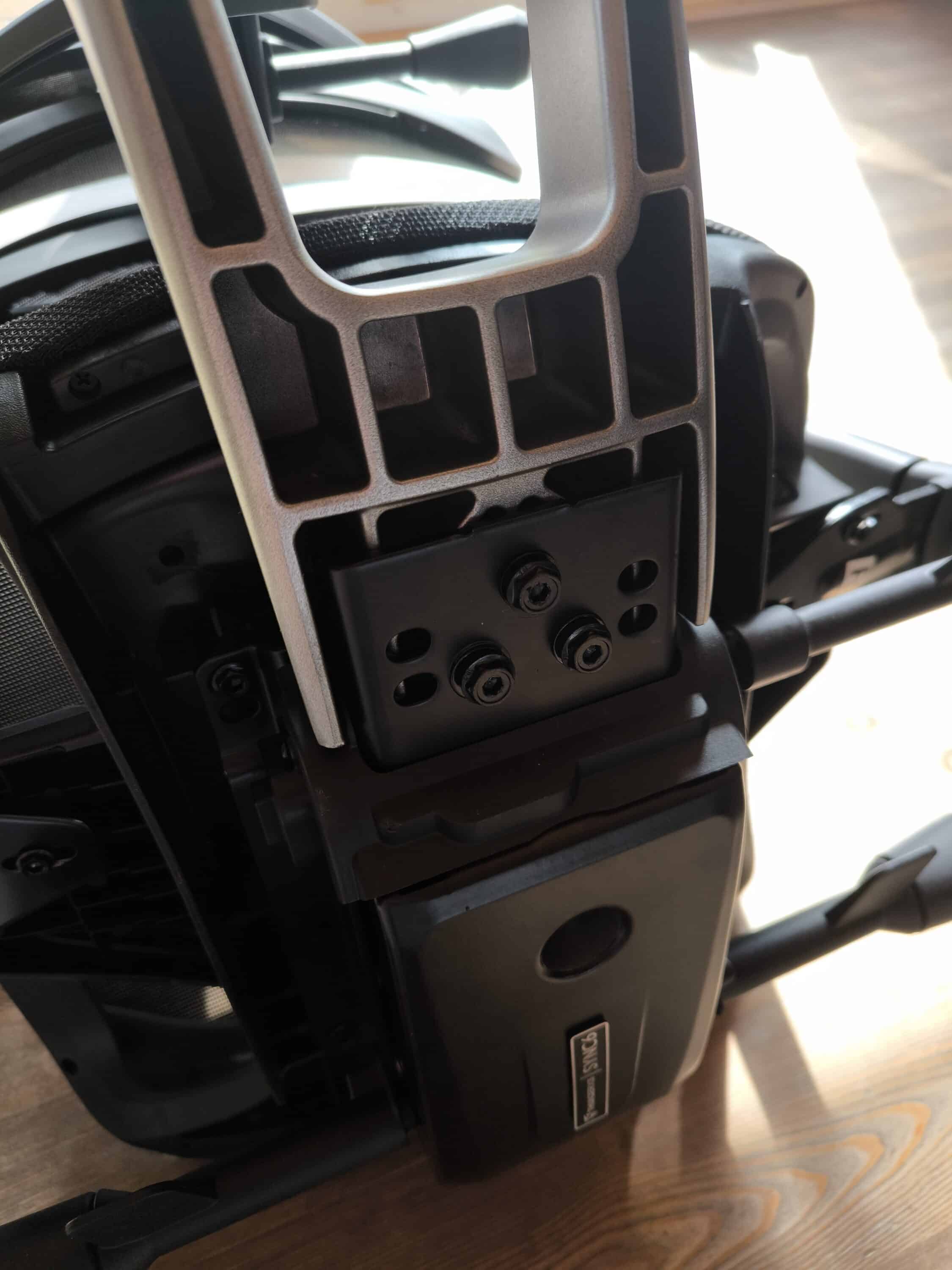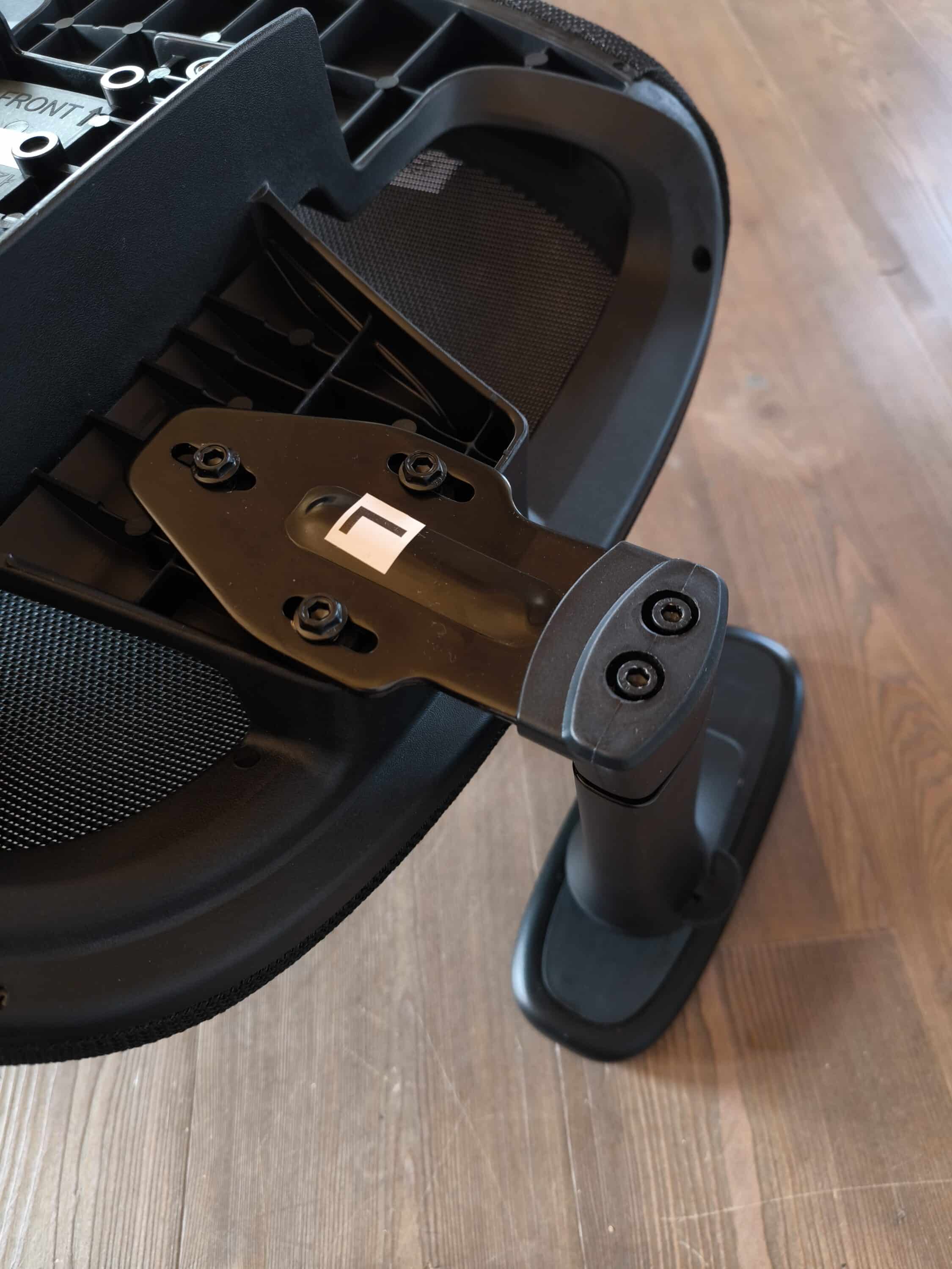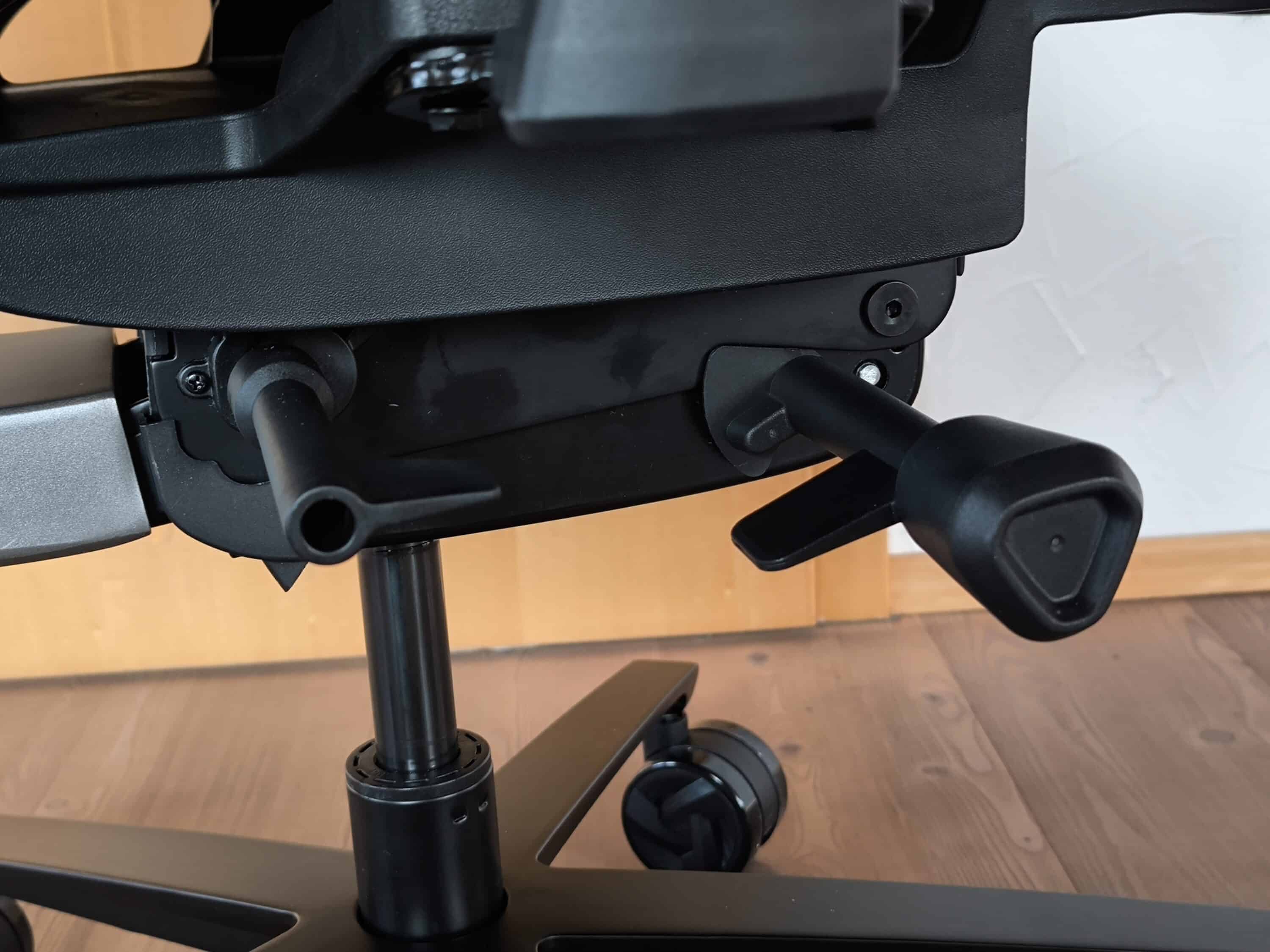 The first step is to attach the armrests to the underside of the seat. At this point, the instruction manual is somewhat imprecise, as it assumes that the armrests have already been rotated 90 degrees for assembly. Once this has been done quickly, the starting point also matches the instructions. The SYNC6 mechanism is then also fitted to the underside of the seat and secured with four M5 hexagon bolts.