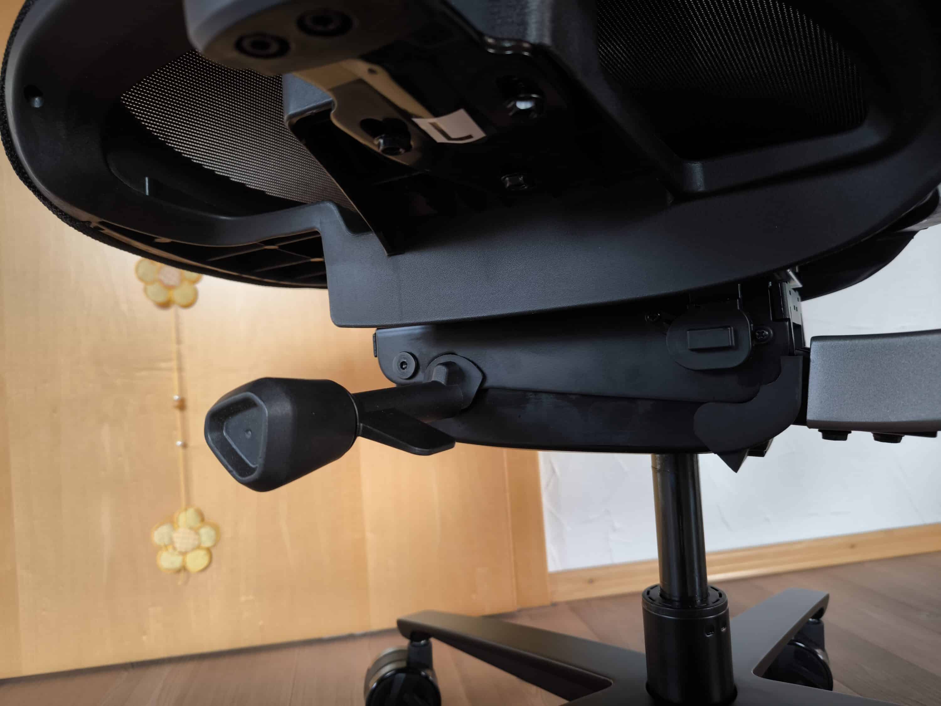 The ThunderX3 FLEX Pro | MESH definitely focuses on ergonomic functions, as you can already see from the 19D adjustment options. Starting with the seat, which can be tilted by 6 degrees, through to the seat surface, which is approx. 50 cm wide and can be moved forwards and backwards using a mechanism. As already mentioned, the locking points for this are located under the seat itself.