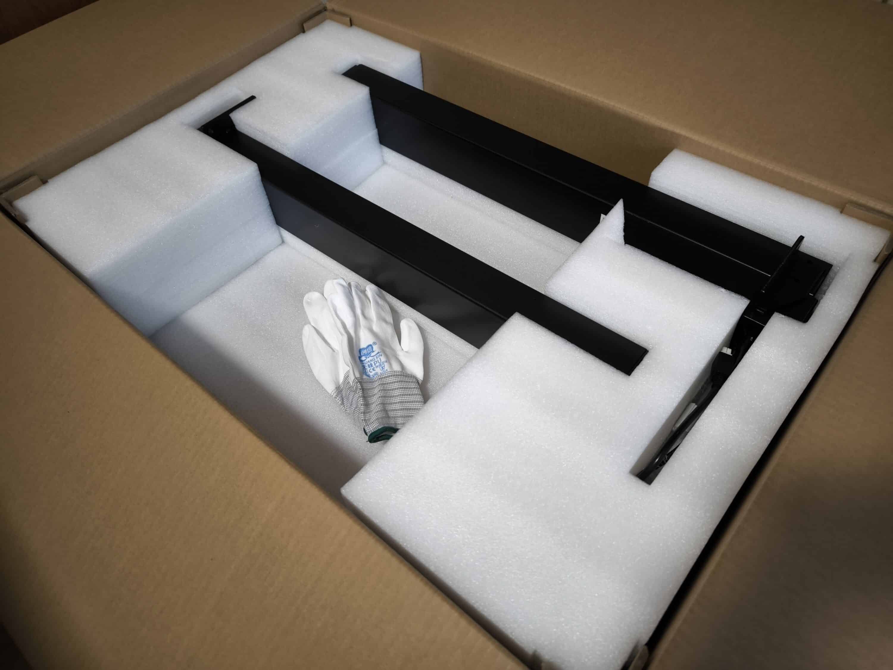 The ThunderX3 LAB-X is delivered in two separately packed boxes. When unpacking, it is noticeable that the scope of delivery is quite generous and that the manufacturer has included some additional screws. The actual table top consists of four individual parts and the feet are made up of two elements. There is also a cable tray, a cup holder and a hook for hanging headphones.