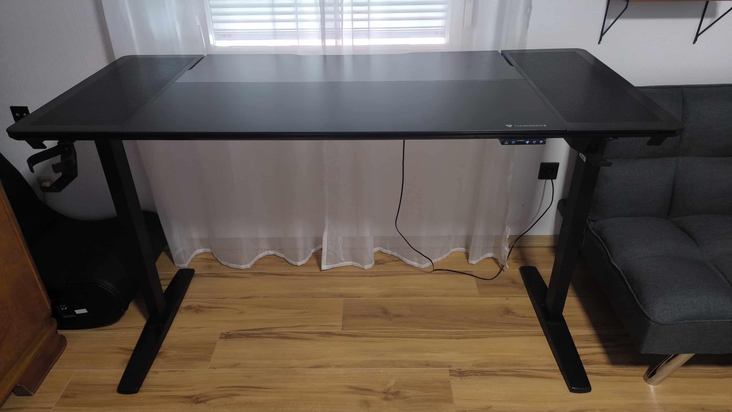 There are no major flaws to be found in the workmanship of the ThunderX3 LAB-X. All components appear to be of high quality and the integrated single motor performs a noticeable but comparatively quiet service. A positive highlight is the controller including backlighting of the buttons, which is particularly useful in the dark. Fears of a wobbly frame can also be quickly dispelled – the table legs are robust and sufficiently heavy to guarantee a secure stand.