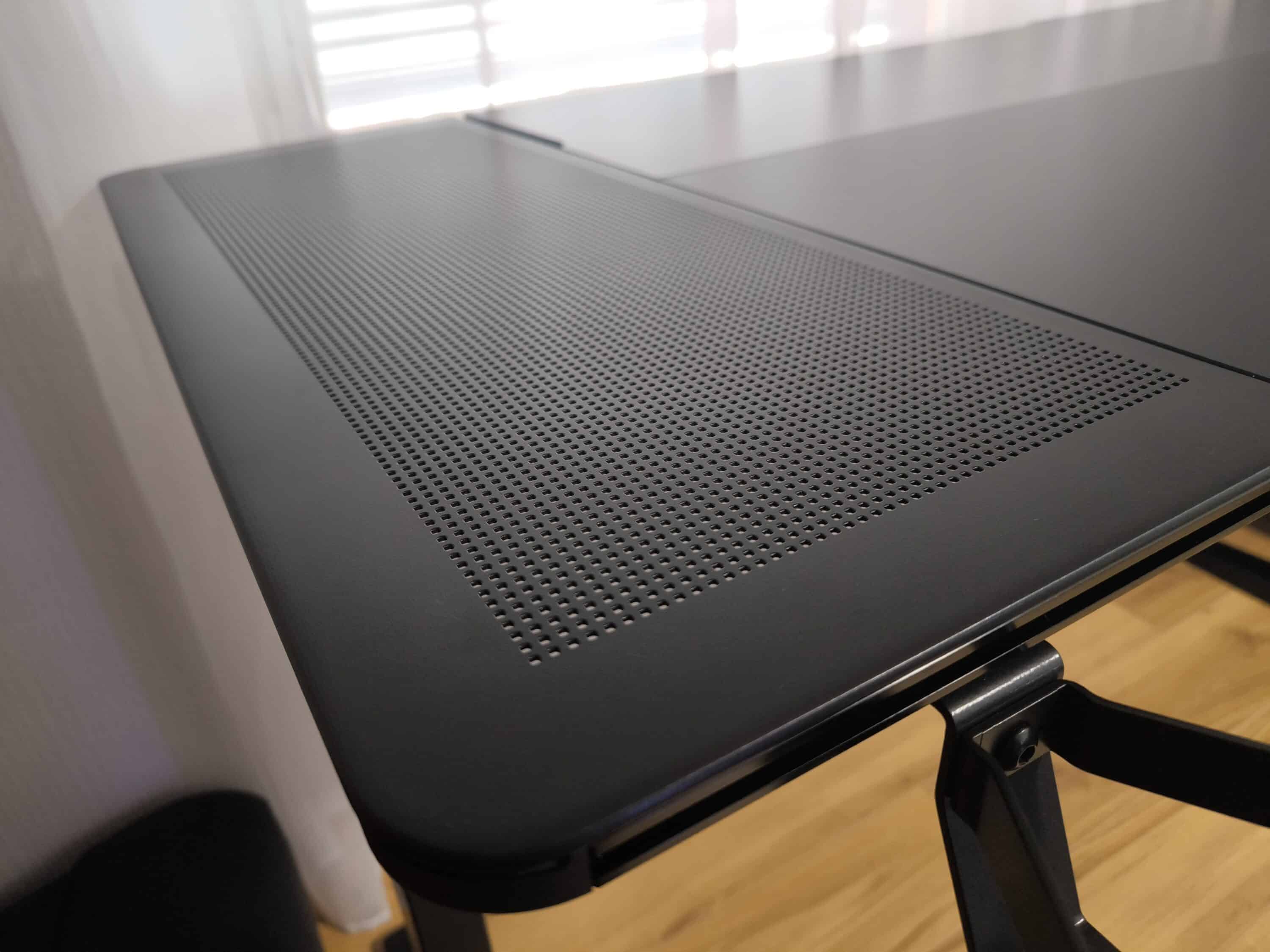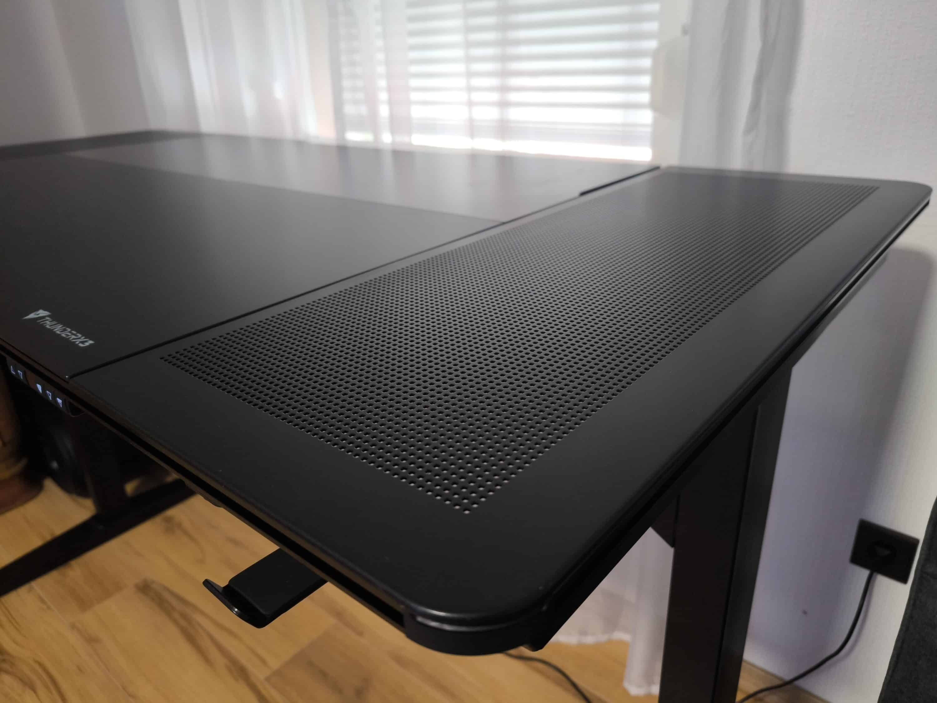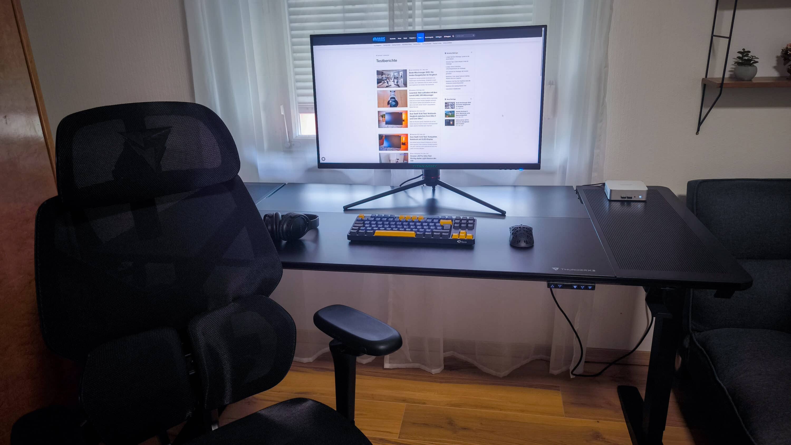 On the negative side, there are hardly any noticeable weaknesses. Otherwise, there is a certain susceptibility to fingerprints on the tabletop, not to mention the stronger reflections on the tempered glass itself. Alternatively, better cable management could also be integrated, as the cables are quite exposed on the underside and could ideally be routed through closed cable ducts. However, due to the fact that the cables are attached quite close to the underside of the tabletop, the latter are hardly noticeable and therefore negligible.