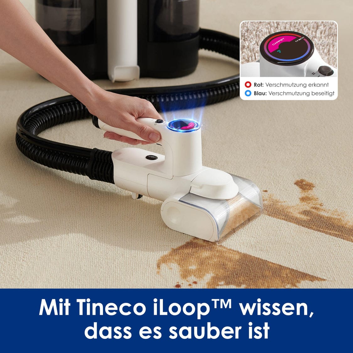 The 2-in-1 water tank ensures a clean separation of fresh and dirty water, which makes handling easier. Compared to its cordless siblings Carpet One Spot and Carpet One Spot Essential, however, the iCarpet Spot has to do without some convenient functions such as the iLoop dirt sensor, self-cleaning and spot mode. Many people will certainly miss features such as spot cleaning, iLoop dirt sensor and, above all, self-cleaning. However, the Tineco iCarpet Spot is still a good choice for users looking for a compact, powerful and attractively priced carpet cleaner for indoor use. However, anyone looking for maximum mobility or additional convenience functions should consider the battery-powered alternatives.