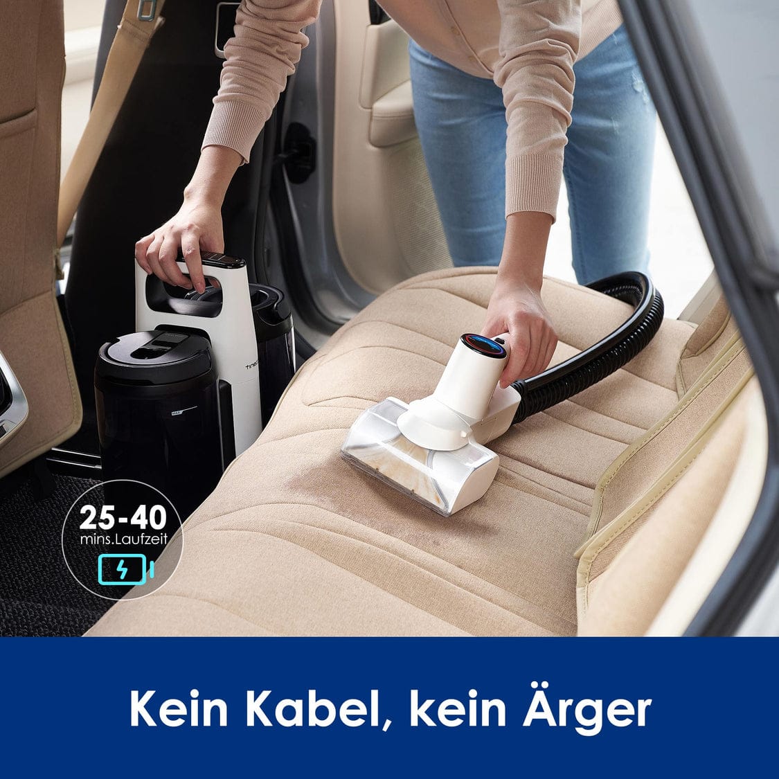 On top of this, the constant power connection means that the Tineco can run indefinitely. This means you can clean the whole couch if necessary, which can take up a lot of time, especially with large models. But let’s not kid ourselves. Of course, there are also scenarios in which a rechargeable battery would definitely be an advantage. This is particularly the case when used outside the home. Cleaning car seats is a particularly good example of this.