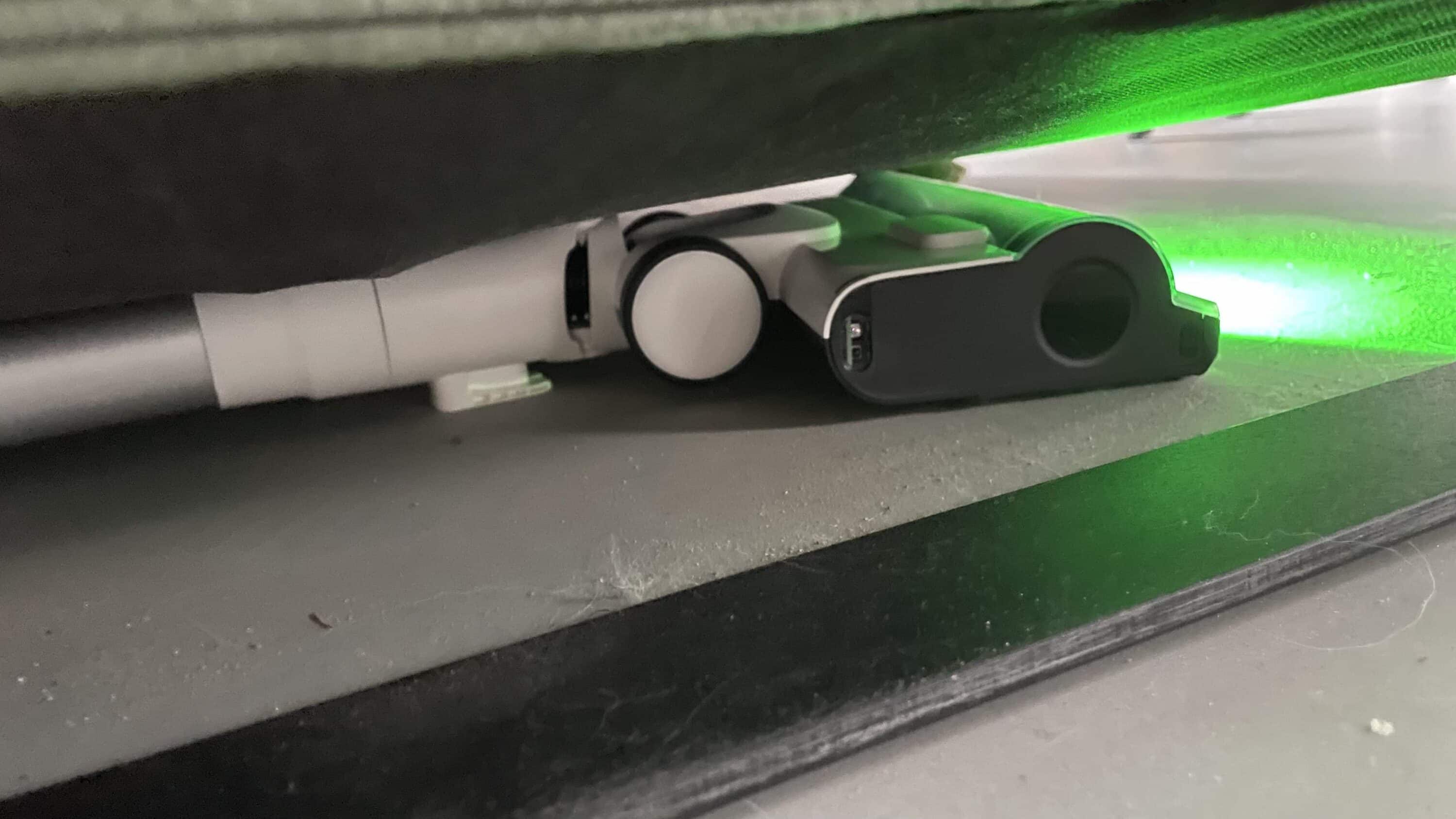 Thanks to the light, dust residues can be detected quickly, especially in darker areas. The green light is designed to make particles as small as 0.02 mm visible. Together with the other sensor technologies DustSense and EdgeSense, the smart cordless vacuum cleaner is said to have a 66% increase in cleaning efficiency.