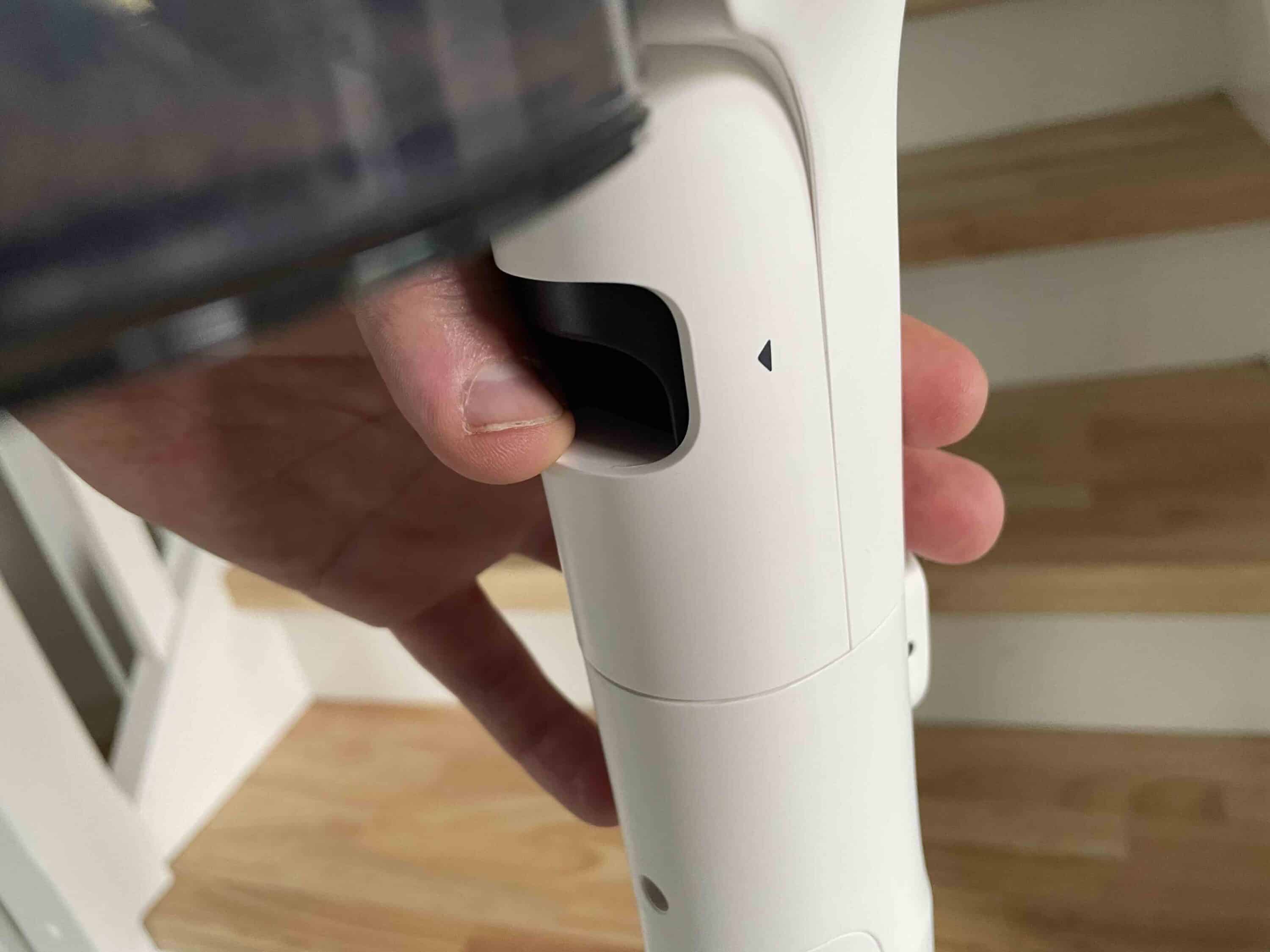 But apart from the color palette, the A50S does a lot differently to its sibling in terms of design. On the one hand, this concerns the handpiece in the upper part of the device. With the A50S, Tineco has opted for a pleasantly ergonomic handle that offers two holding options thanks to its angled shape. This is a great advantage, especially for longer cleaning sessions or hard-to-reach areas.