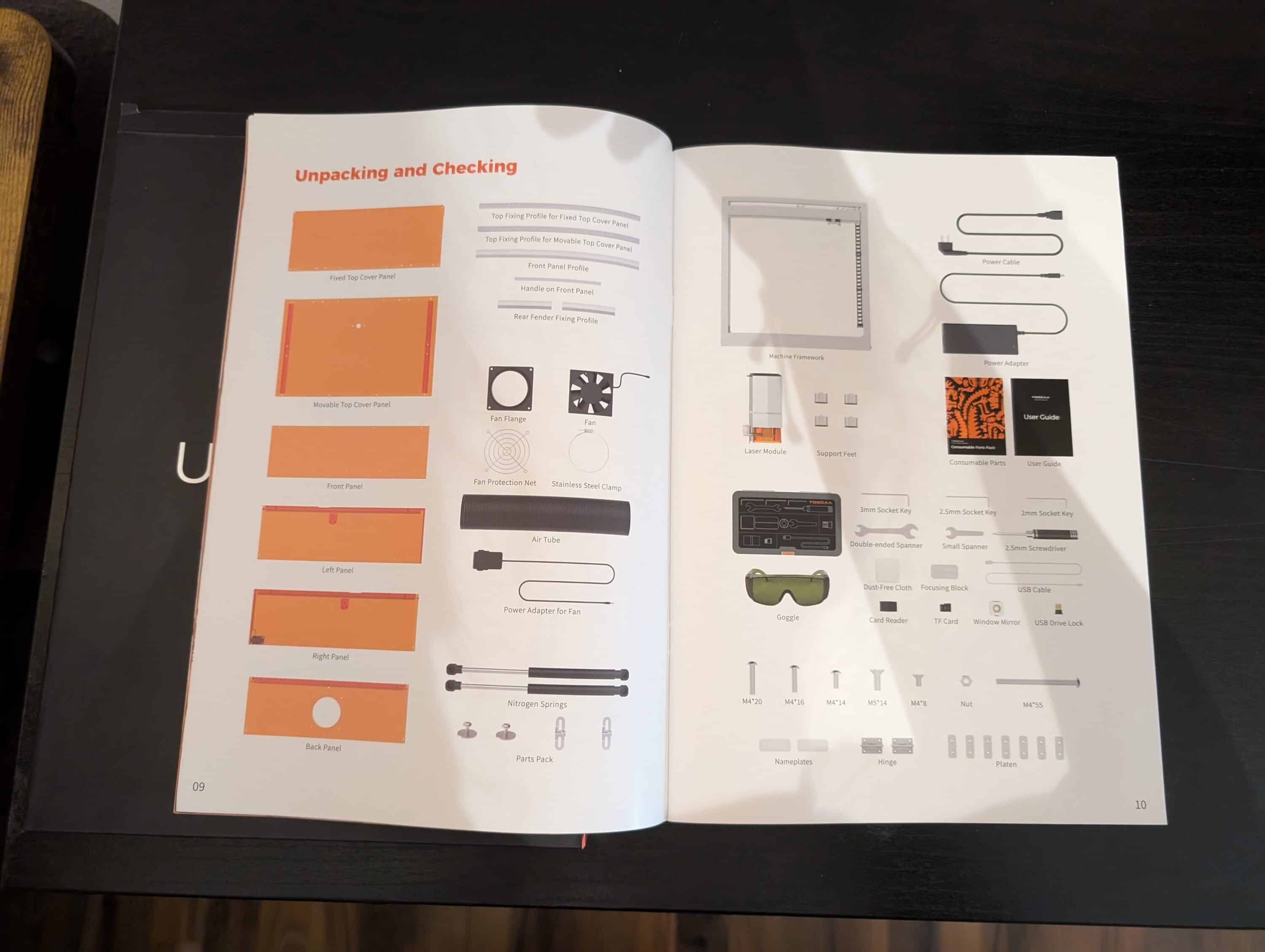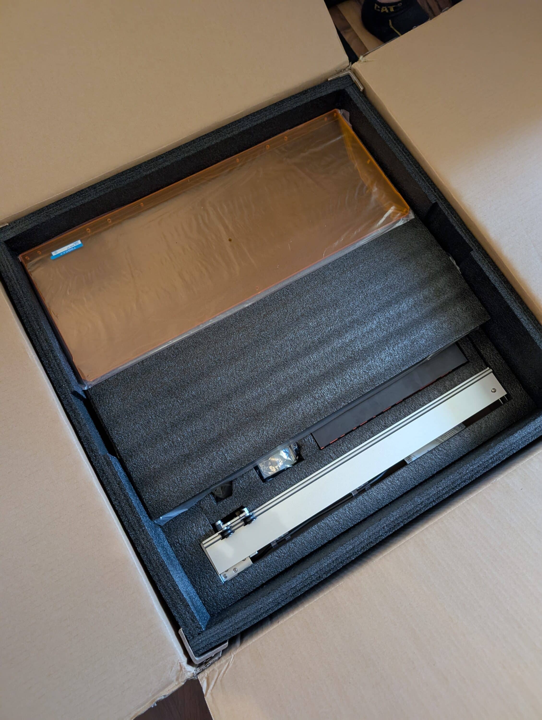 The packaging is extremely well thought out – every part has its place in the foam, so nothing can slip out of place. The 13 kilogram basic device also comes largely pre-assembled, while only the six orange acrylic glass panels and various small parts await assembly.