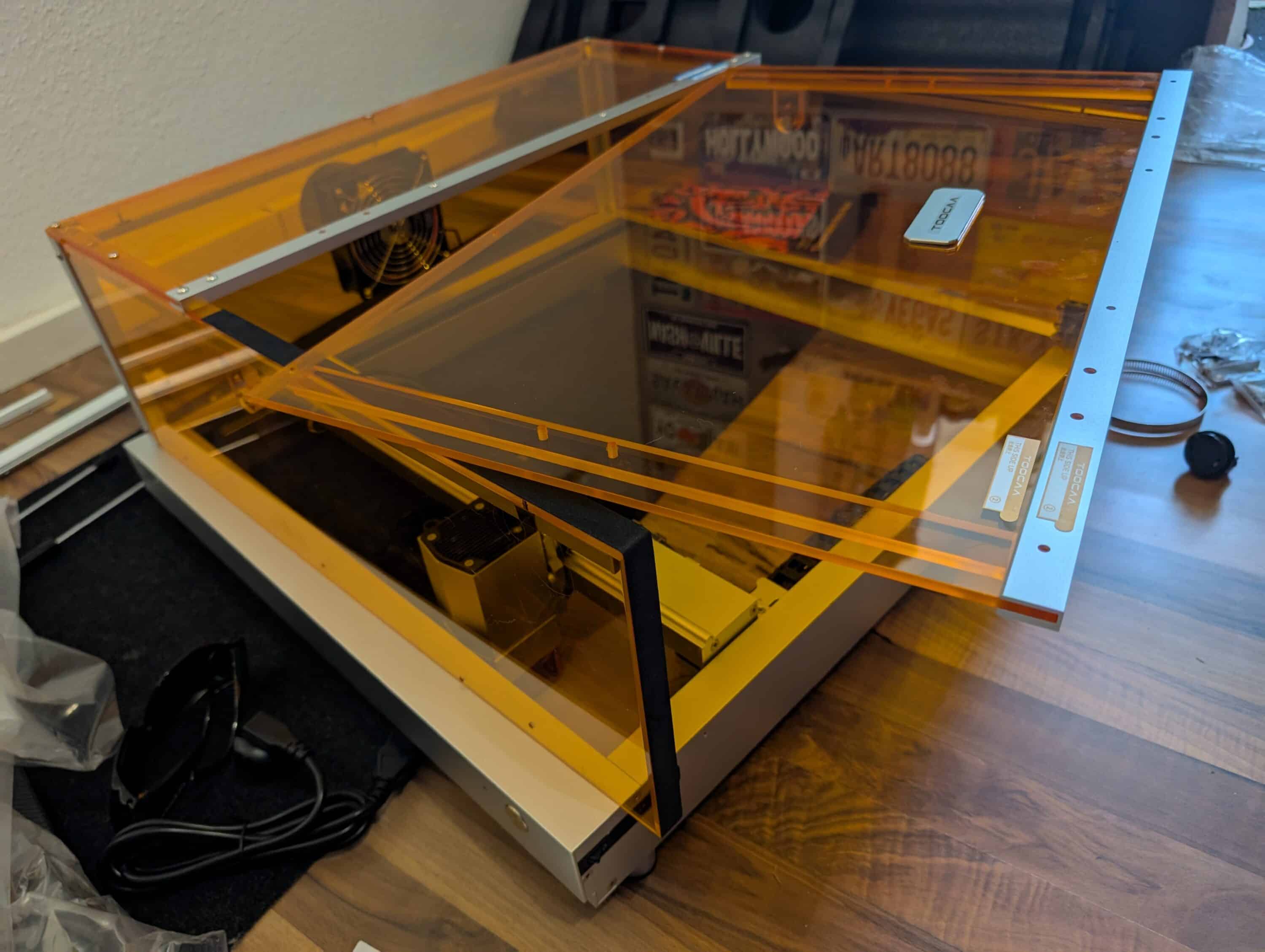 The safety concept is definitely a unique selling point, although the L2 is not alone. At 40 watts, the xTool S1 also offers plenty of power and complete enclosure, but at 2,600 euros it costs twice as much as the TOOCAA L2 40W (1,316 euros). Open 20W systems from Atomstack or Sculpfun, on the other hand, cost only 350-400 euros, but do not offer Class 1 certification.