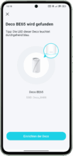As with the TP-Link Deco BE25 (our test), setting up the Deco BE65 is also simple and user-friendly. TP-Link provides the Deco app for Android and iOS for this purpose. This guides you through the entire setup process with easy-to-understand step-by-step instructions as well as supplementary illustrations and short videos. All you need to do first is log in with a TP-Link ID or create a new account – the mesh system cannot be set up without one.