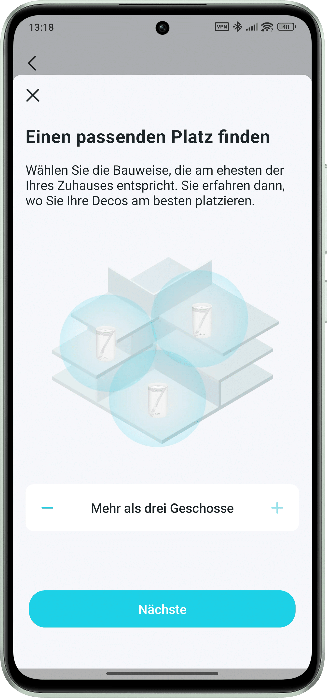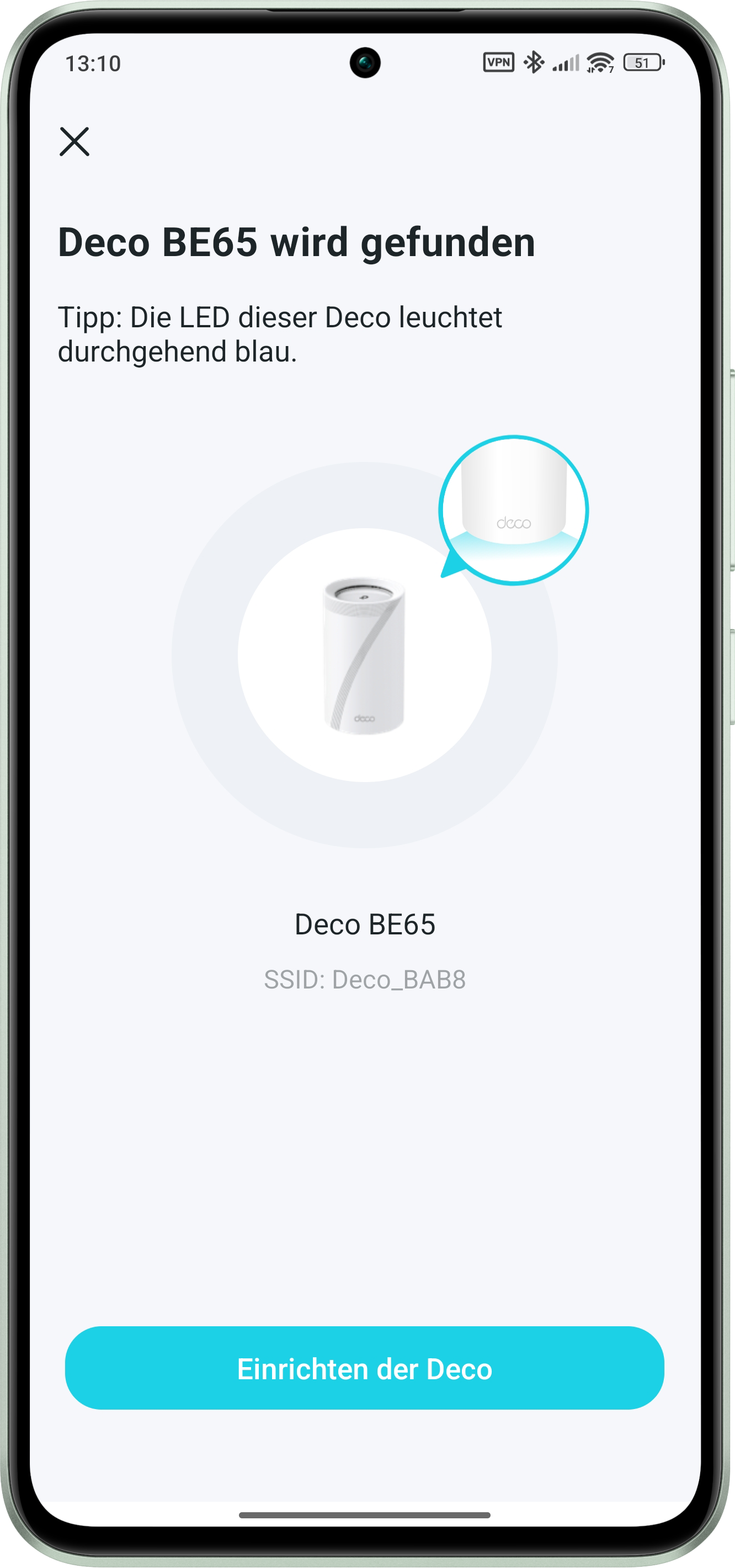 If the mesh system is to be expanded at a later date, for example to achieve greater coverage, another Deco can be added using the plus symbol in the app. As all Decos are compatible with each other, it does not matter whether a different series, such as an X1500, is integrated. Once the location has been selected and the new Deco has been switched on, it is automatically linked to the account or mesh system. Overall, the setup procedure is identical to the other models, which is why we were through in just a few minutes.