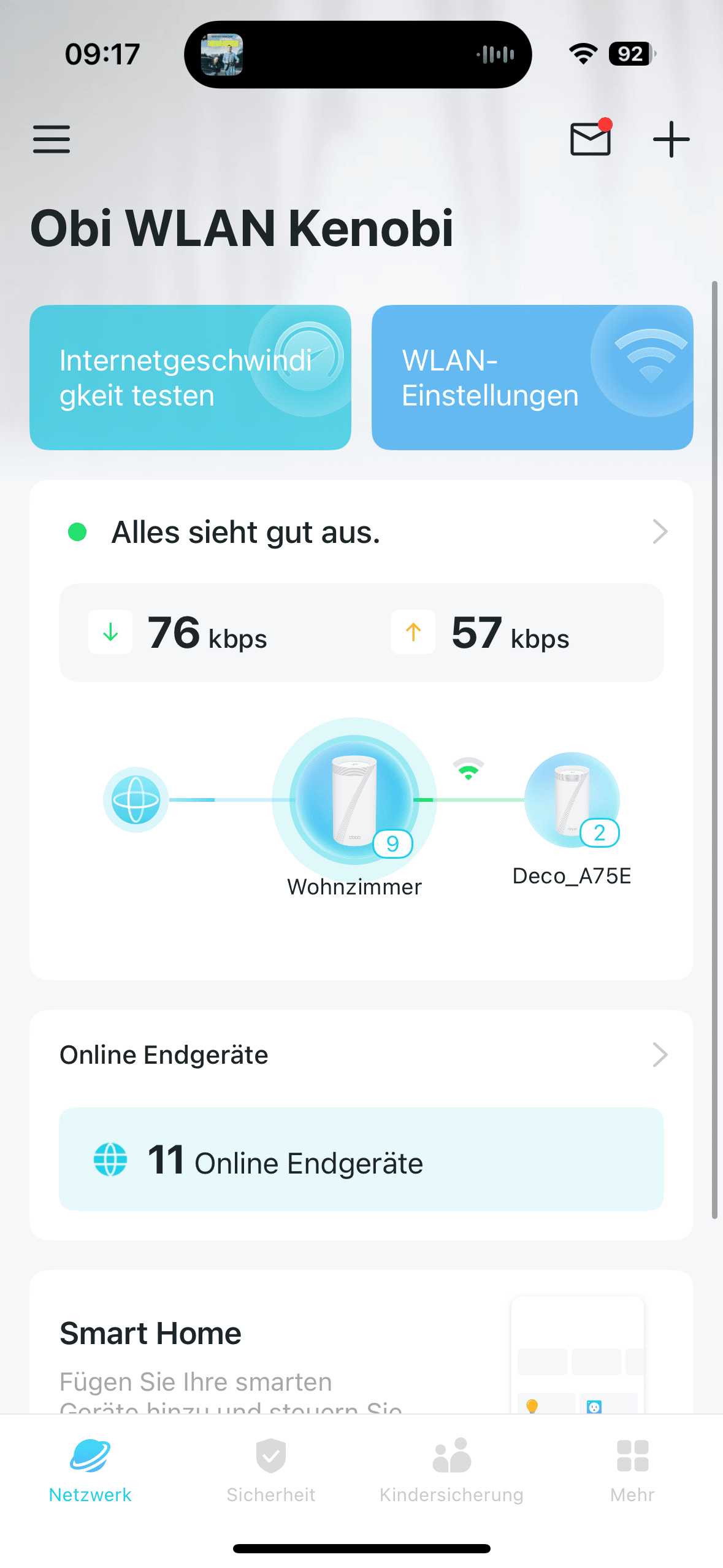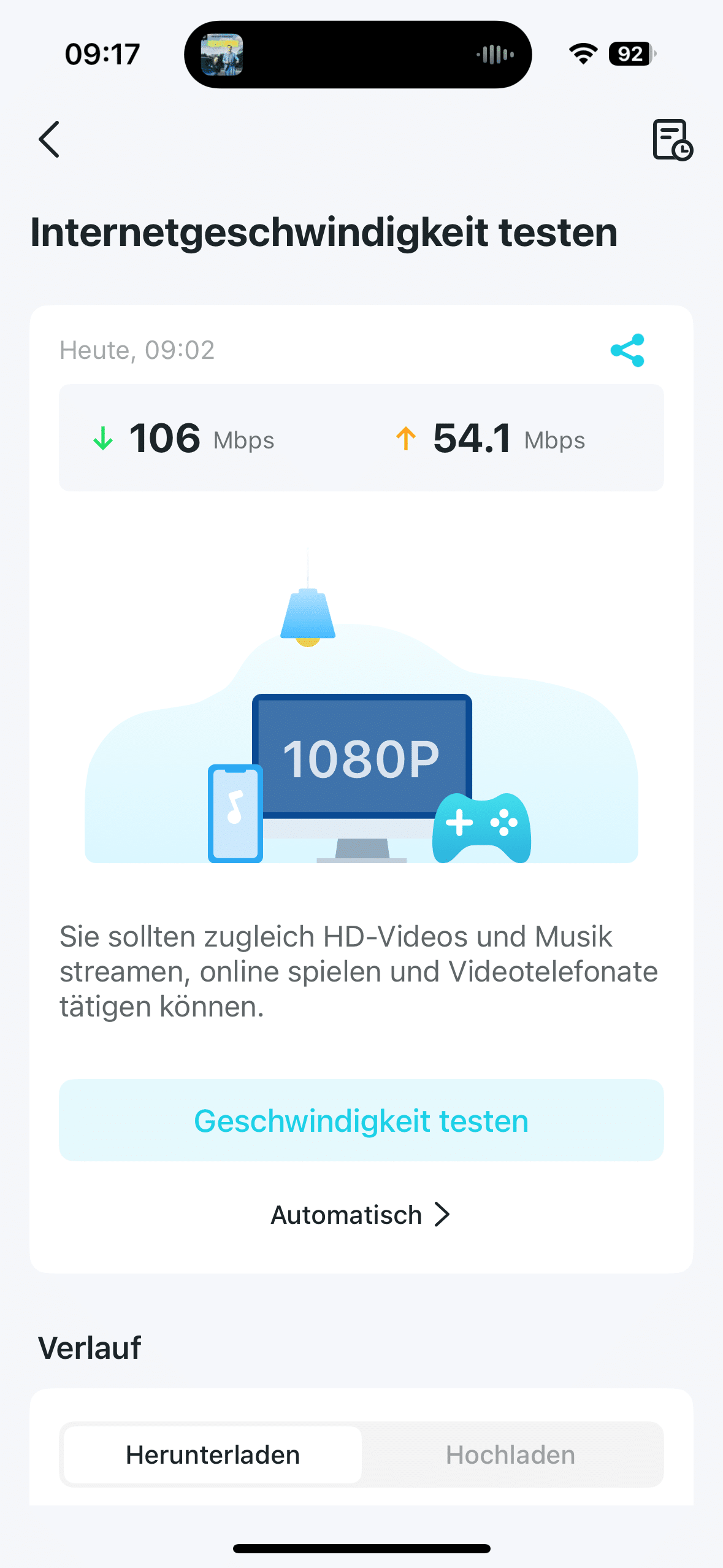 After commissioning, you can let off steam in the Deco app to your heart’s content. It scores with an excellent overview. Although it sometimes suffers from translation errors, this didn’t really bother me in practice. Only in the support area is there room for improvement. Here, English laymen will have to resort to a translator for better or worse, as most of the information is in English. The smartphone app not only allows you to view the status of the system. You can also use a speed test to check how fast the data rate currently is.