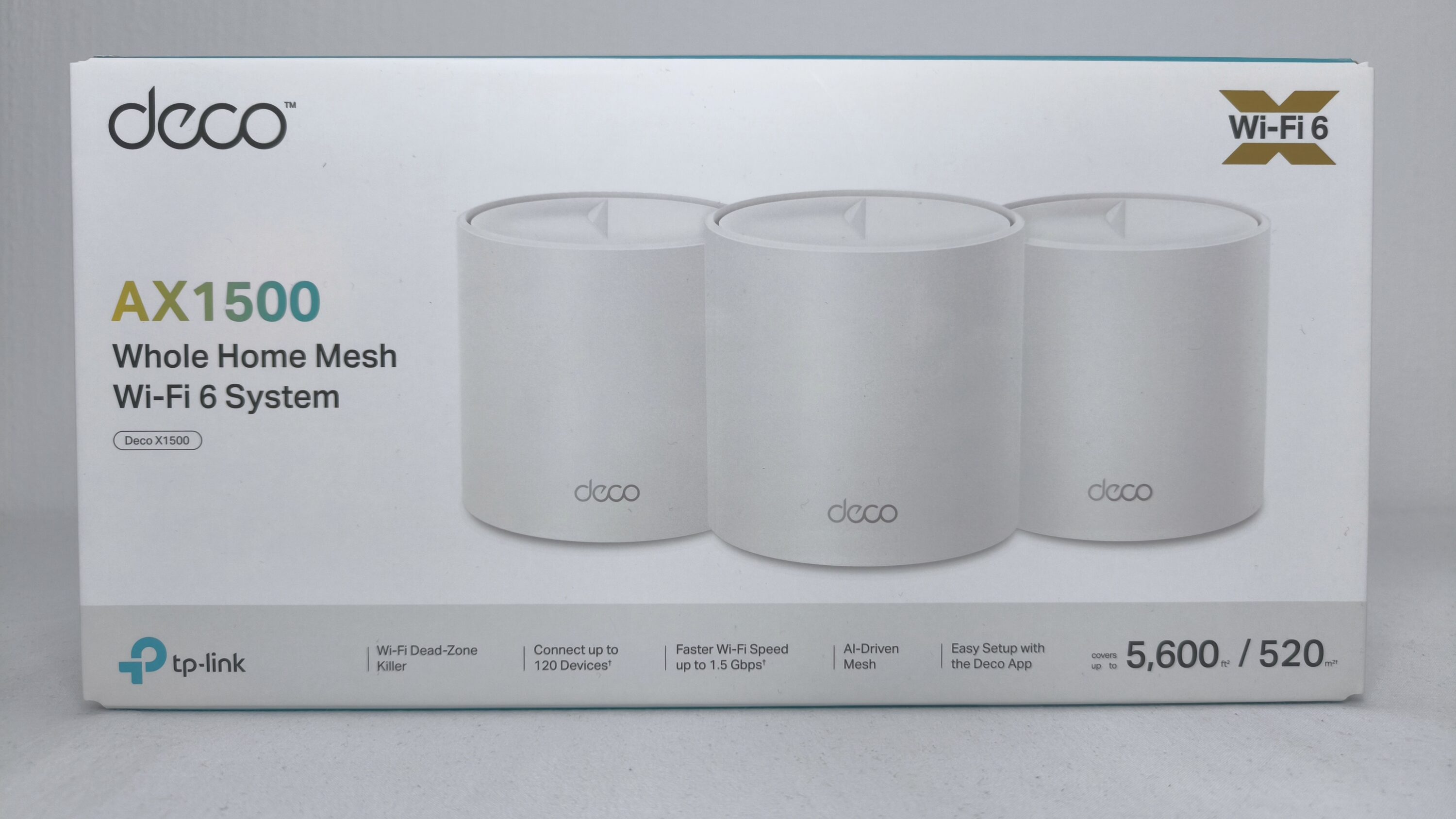 The manufacturer TP-Link has always stood for network solutions, among other things, and has built up an extensive range for different applications and budgets over the years. With the TP-Link Deco X1500, another mesh system has been added to this range, which should be of particular interest to the average consumer without any special requirements. The X1500 promises reliable dual-band Wi-Fi according to the WiFi 6 standard (802.11ax), simple setup via app and an area coverage of up to 520 m² when using the 3-pack. This should therefore be feasible for most households – especially with speeds of up to 1,500 Mbit/s, spread over two frequency bands.