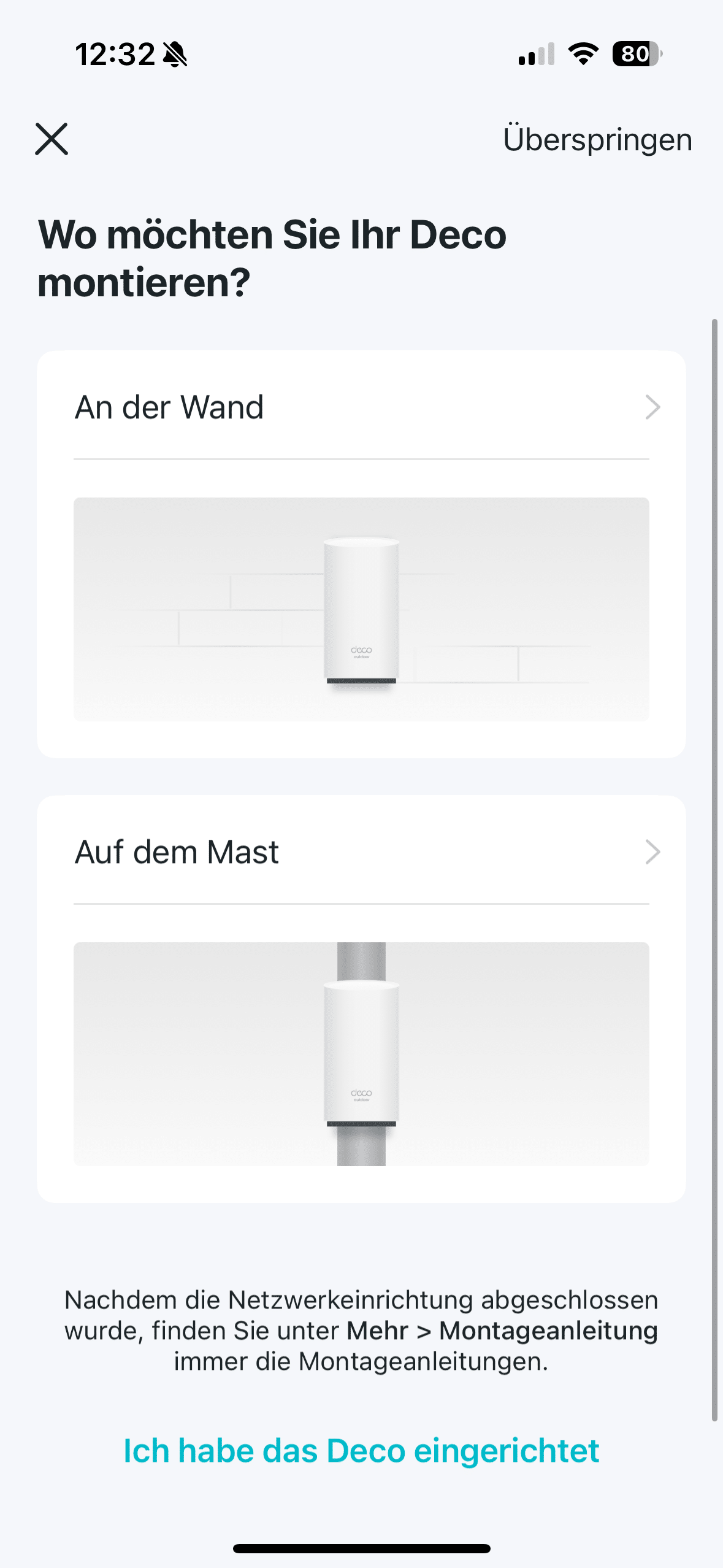 This is at least the case if the X50 is your main Deco. However, if it is to be integrated into an existing mesh system, the mains cable is sufficient. With PoE, however, the LAN cable is sufficient, as the X50 receives both Internet and power via the cable. As soon as the mesh system is supplied with power, it continues in the Deco app.