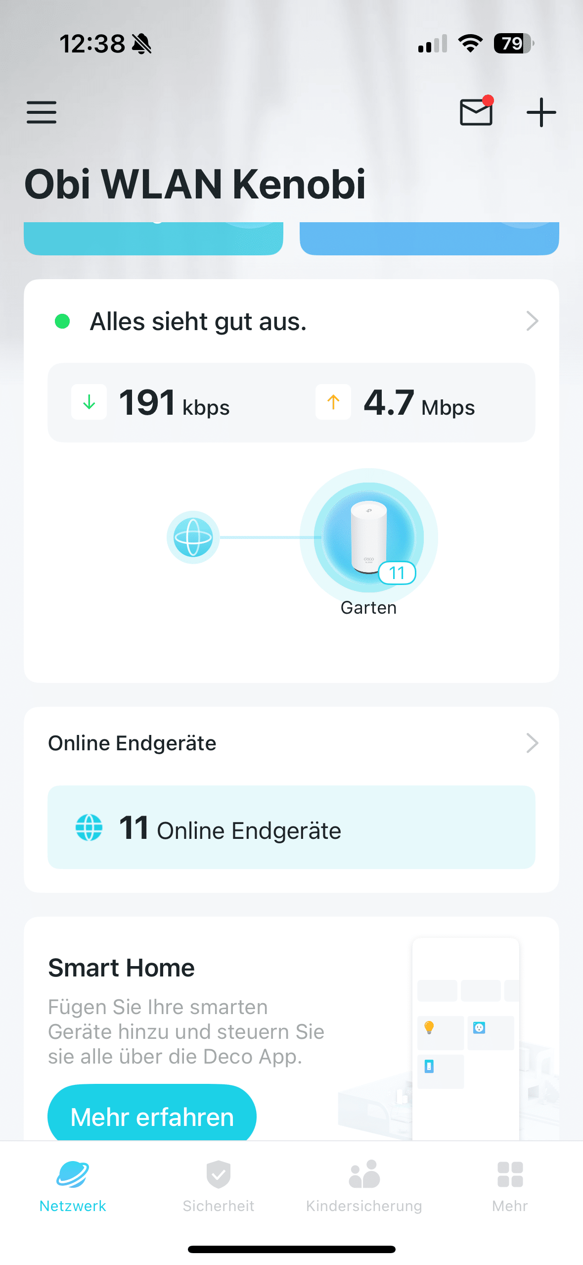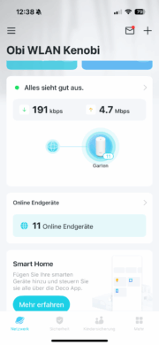 In practice, the system shone with very good data rates and stable performance – even with data-intensive applications. So if you already use a Deco system or are planning to extend your network into the garden or yard, the Deco X50 Outdoor is a powerful and elegant solution. The only downside: compared to the standard version, there is one less Ethernet port – but thanks to PoE and practical features, this is hardly an issue.