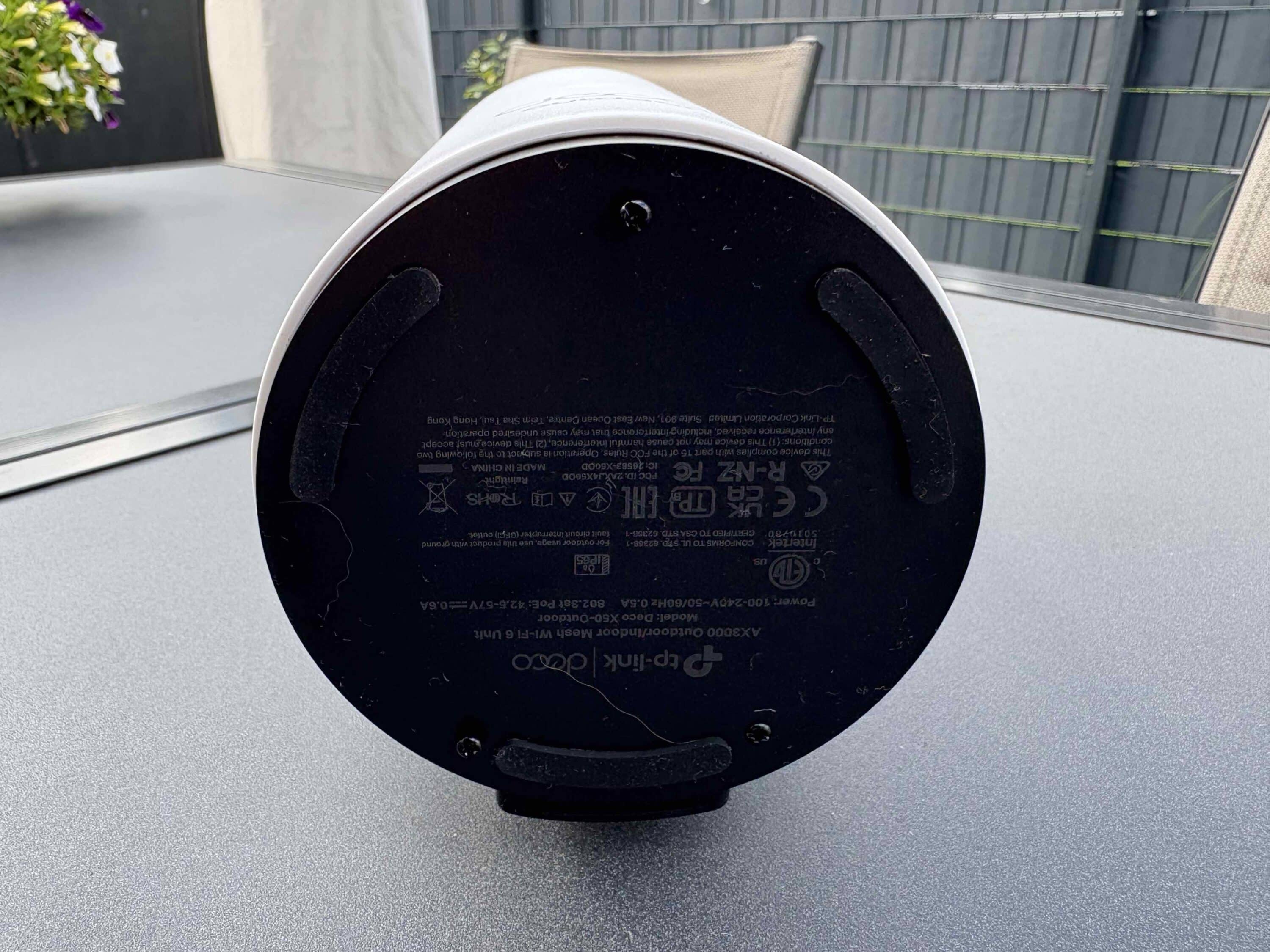 TP-Link has placed 2x Ethernet ports with 1 Gbit/s, which support Power over Ethernet (PoE), on the bottom of the X50 Outdoor. There is also an AC connection and a reset button. These are protected from water and dust by the base. The standard version has a total of three Ethernet ports. So if you only want to use the mesh system indoors anyway, you can do without the outdoor version and opt for the standard version instead to get one more Ethernet port. Unless you are interested in PoE.