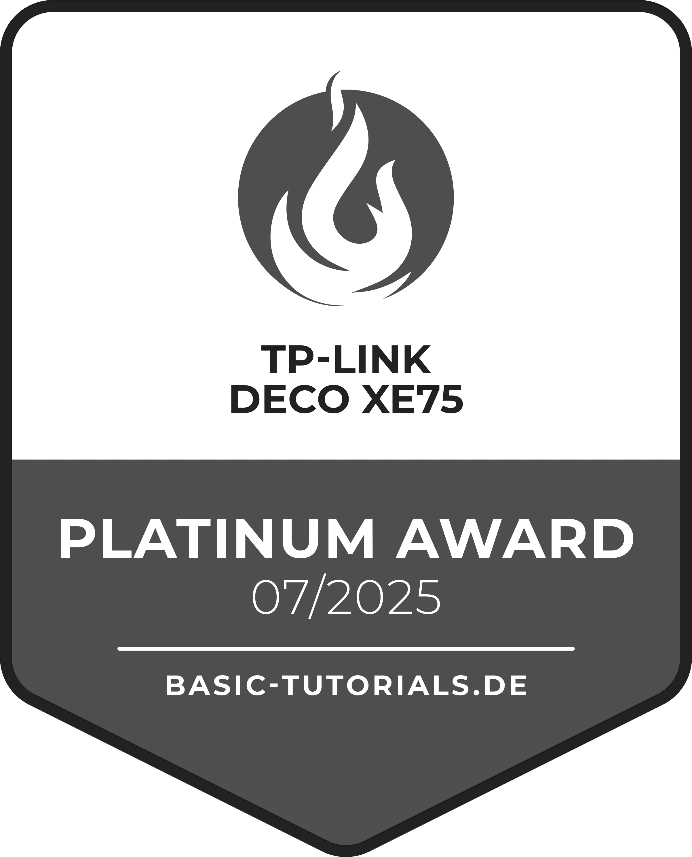 The TP-Link Deco XE75 set of three proved to be an extremely well-balanced and powerful mesh system in the test, which should be of particular interest to homeowners. It impresses with a maximum coverage of an impressive 670 m² with stable transmission rates, which we were able to verify in the test, as well as with three dedicated Gigabit ports per unit. The tri-band mode is also impressive, as it offers access to the still little-used 6 GHz band and therefore ensures less interference. You are independent and can freely decide whether the 6 GHz band is used exclusively as a backhaul for the mesh units or whether it should also be made available to the clients. This point therefore pays off, especially in busy environments with many WLANs. For comparison: Although the TP-Link Deco BE25 has WiFi 7, it does not support this frequency band.