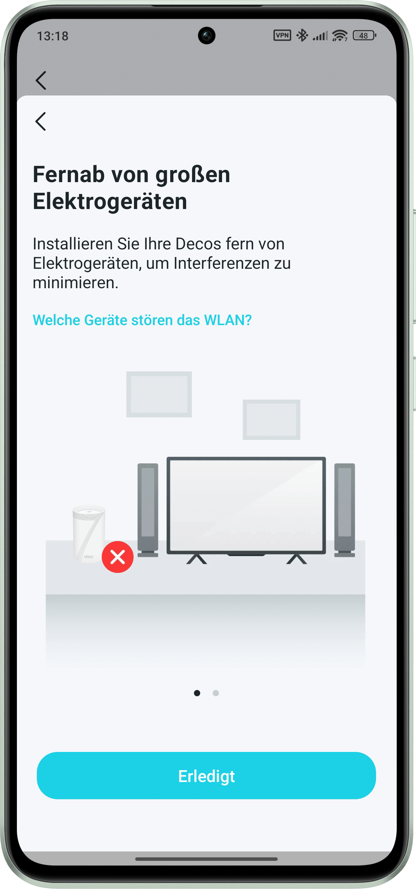 During installation, it is only necessary to ensure that the Deco units are separated from each other in terms of surface area in order to achieve optimum coverage. The devices should also be positioned freely in the room and not directly in front of the window. This prevents the radio waves from “fizzling out” or attenuating the signal.