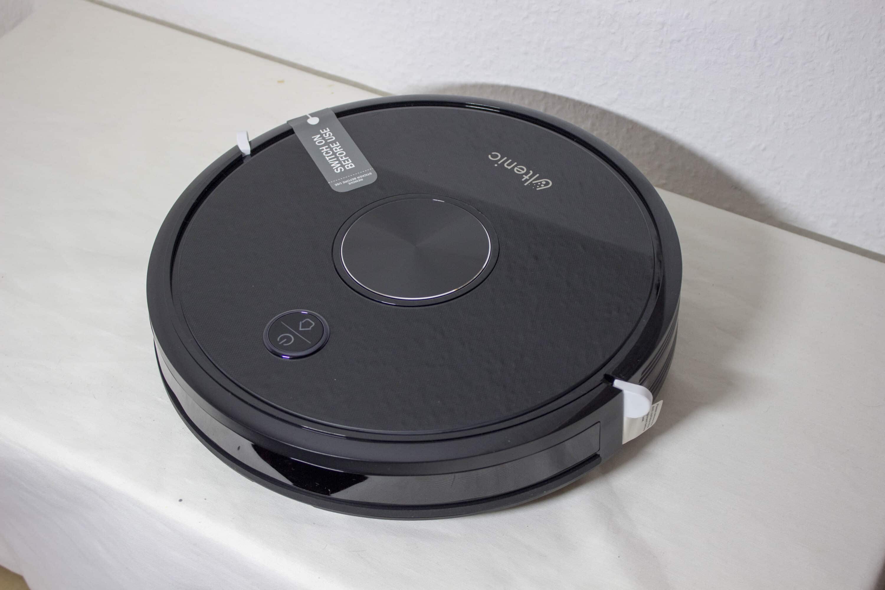 Visually, the Ultenic D5s Pro is rather unobtrusive. Completely kept in black, we only find a shiny circle in the center of the robot vacuum cleaner. Of course, we also find the manufacturer’s lettering on the front. With a diameter of 32 cm, the Ultenic D5s Pro is in the midfield and has a height of 7.29 cm. Chairs could already cause problems with this diameter, but the vacuum cleaner should be able to drive under a bed without any problems.