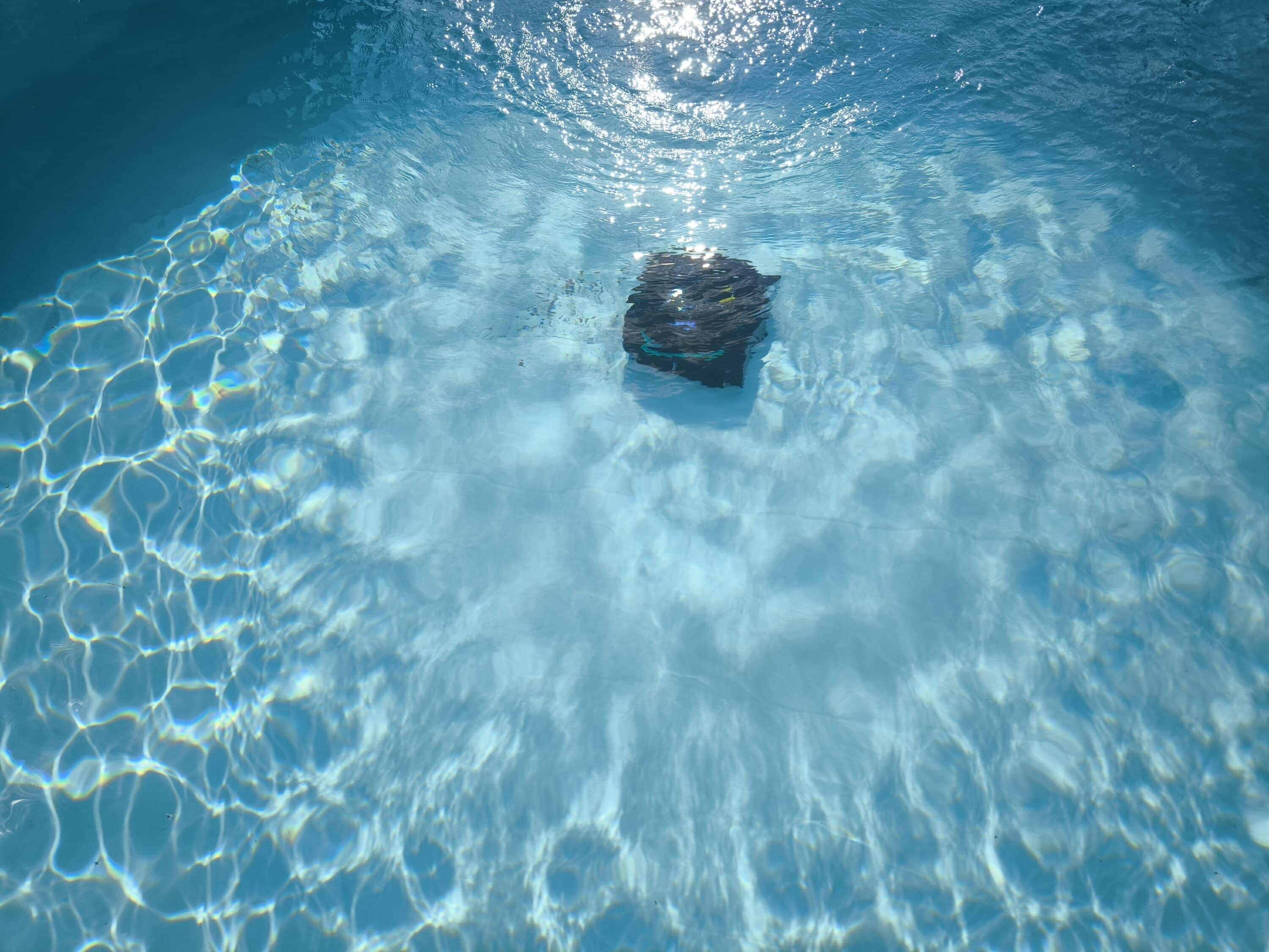 Once at the bottom, the pool robot follows its predefined paths. In our case, the S pattern has proven itself, but the star pattern also achieves solid results. However, navigation is generally more confident with the former, which proves to be advantageous in a circular pool. In terms of speed, the C2 Vision, like the C1, moves at a decent pace. As a result, the C2 Vision hardly whirls up any particles, which are instead carefully sucked into the filter basket by its two roller brushes. The powerful fan on the top of the pool robot is particularly noticeable during cleaning. This results in a movement of the water surface, at least directly above the pool robot itself. So it’s fair to say that the WYBOT C2 Vision has plenty of steam under the hood.