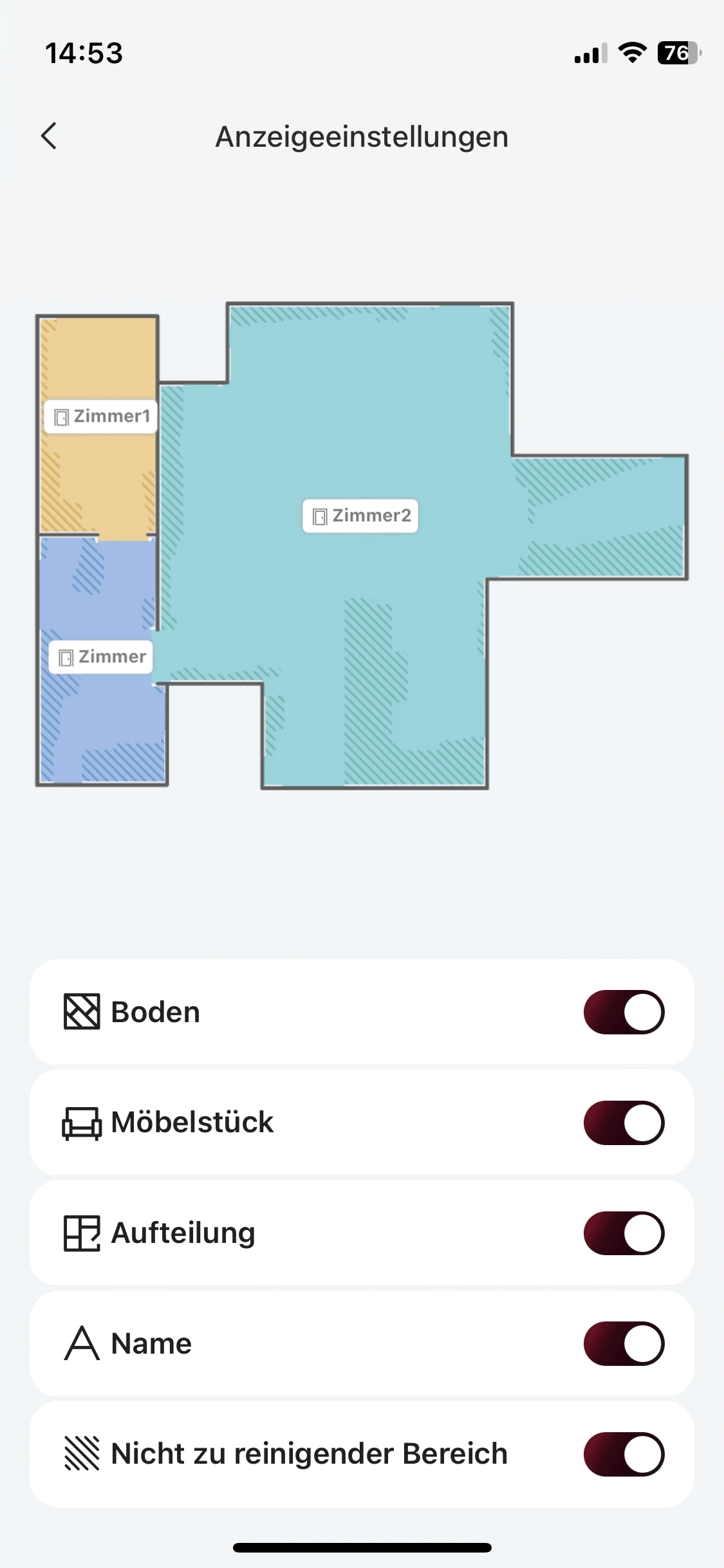 At the end, the S14 PLUS is in your network. This is followed by the robot’s maiden voyage. The device creates an initial map of your four walls. You can track the results in real time in the app. Given the lack of a LiDAR tower, I wasn’t really expecting much. But the result was okay. You can choose between a 2D or 3D view of your home.