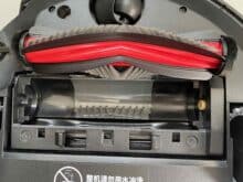 The main brush including zero tangle technology is also located here. A practical comb combs animal hair or similar out of the brush so that it cannot get tangled in the first place. The Yeedi is solid in terms of material quality and workmanship, but brands such as Roborock, Dreame and others are clearly ahead in this respect. The hard plastic used does not exactly feel high-quality. The materials also smelled a little unpleasant when warming up during the hot air drying process.