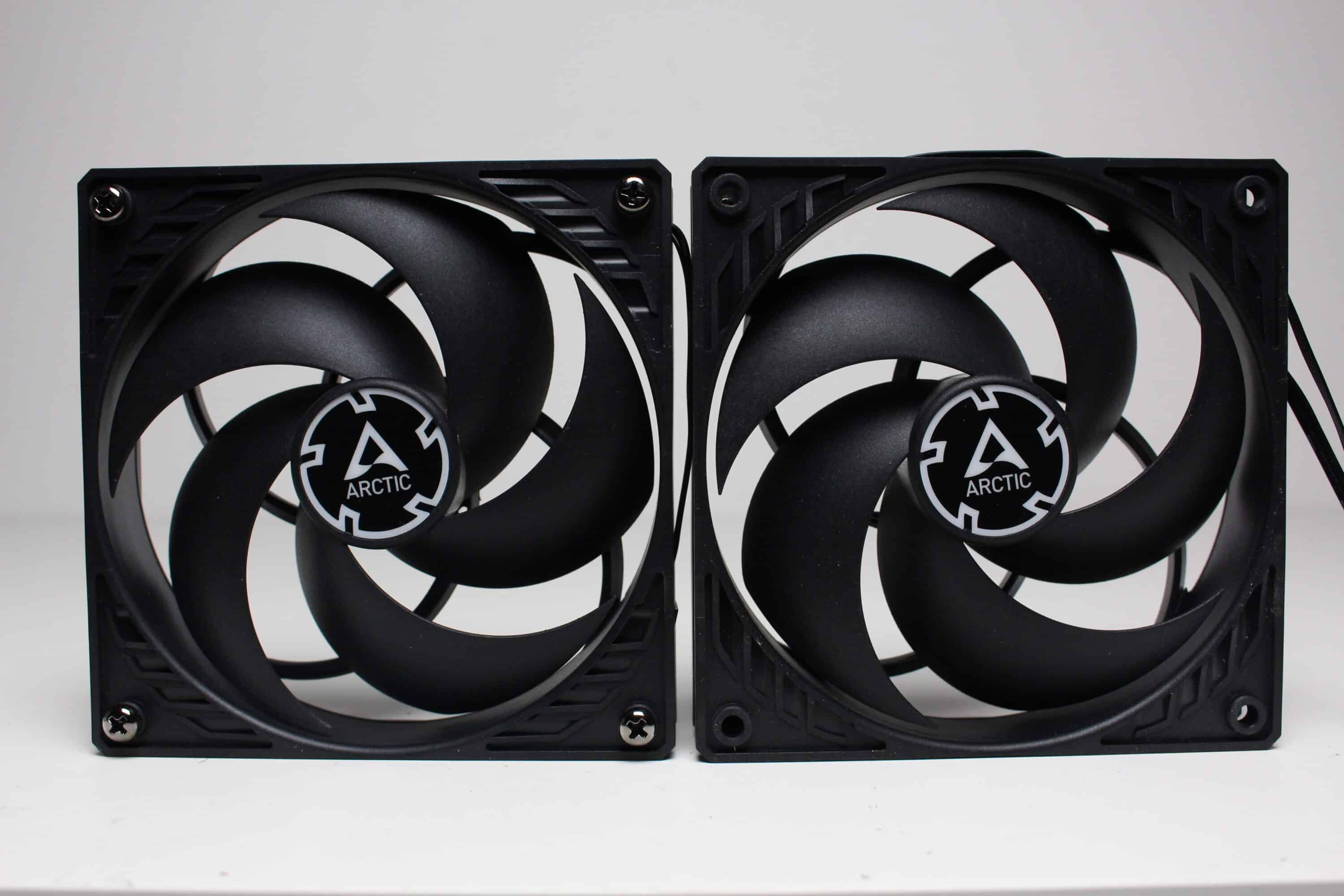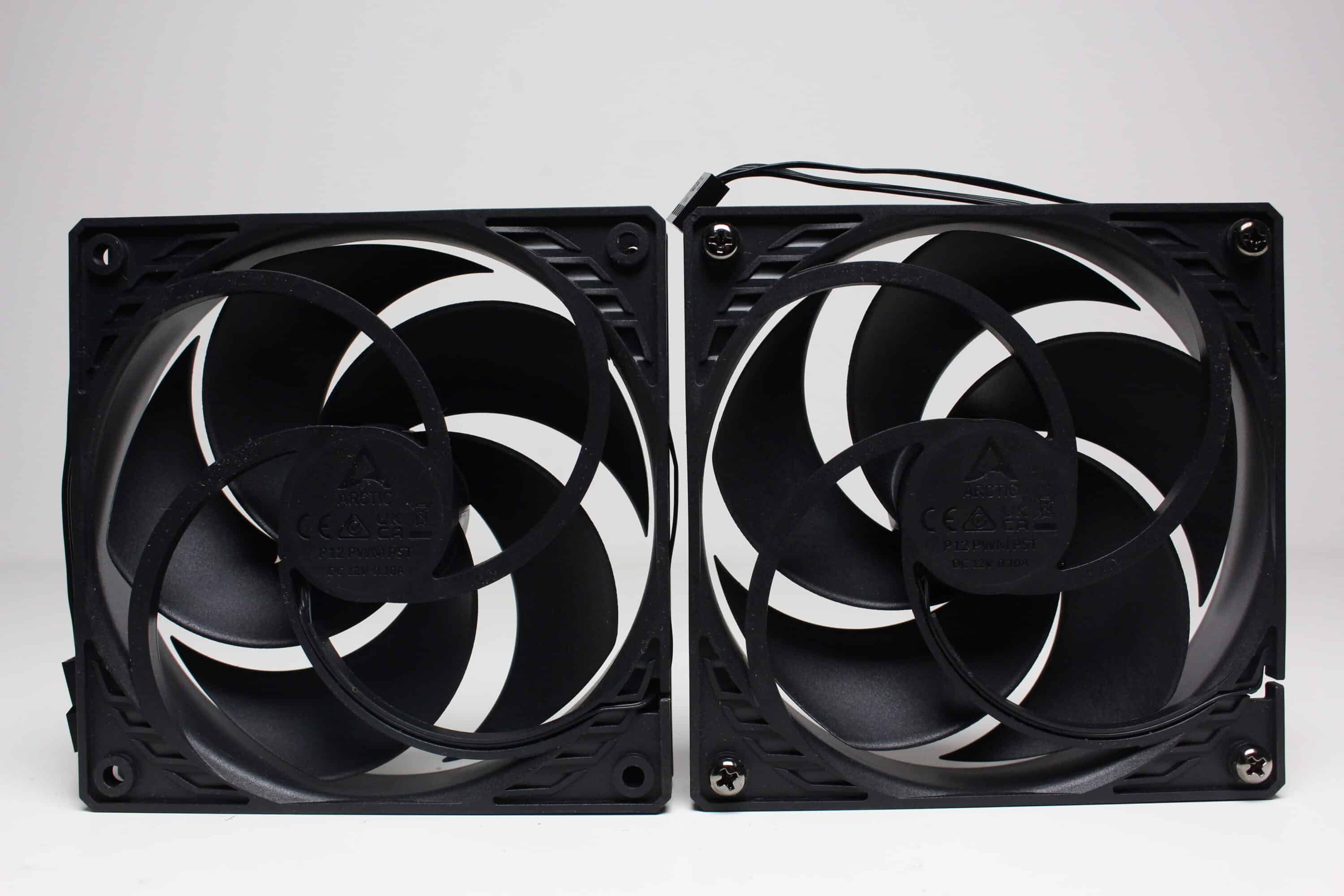The two P12 PWM PST fans supplied are well known and tried and tested. In the version of the Freezer 36 that we tested, both fans consist of a black 120 mm frame and a black rotor with five fan blades. This clearly underlines the sleek overall look of the Freezer 36 Black. Both fans are connected via a 4-pin PWM connector with integrated Y-switch.