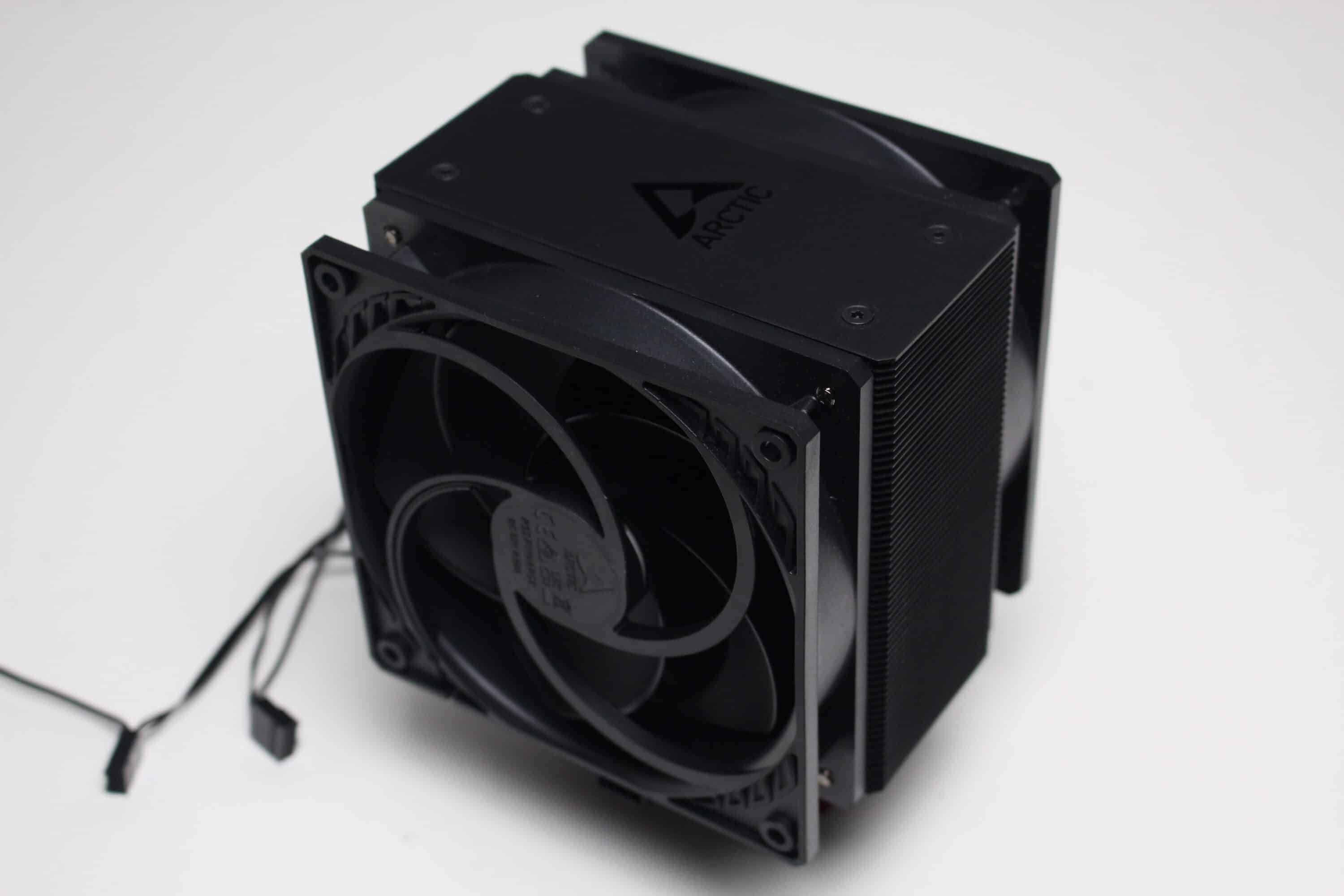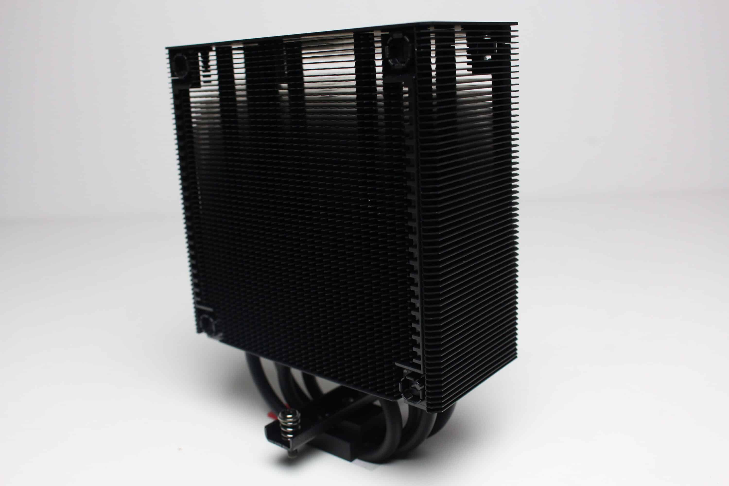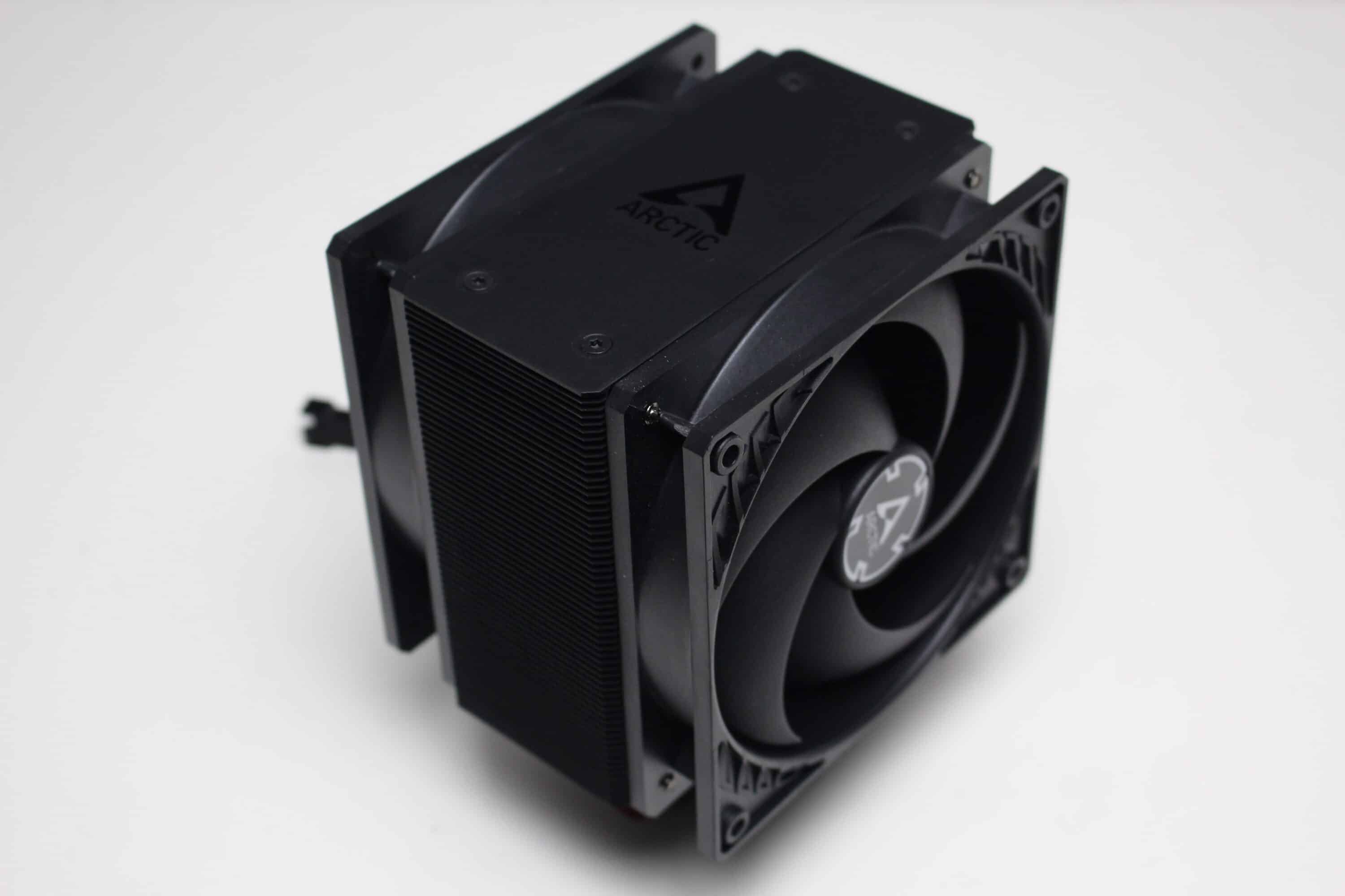 Including the fans, the Arctic Freezer 36 Black weighs 890 grams, which is a decent but not unusual weight. The general workmanship of the heatsink and the fans is of a very high standard despite the low purchase price. There were no scratches or bent fins and the base of the socket has also been properly finished and is very smooth. Thanks to its simple overall appearance, it should look very good in both black and black and white systems.