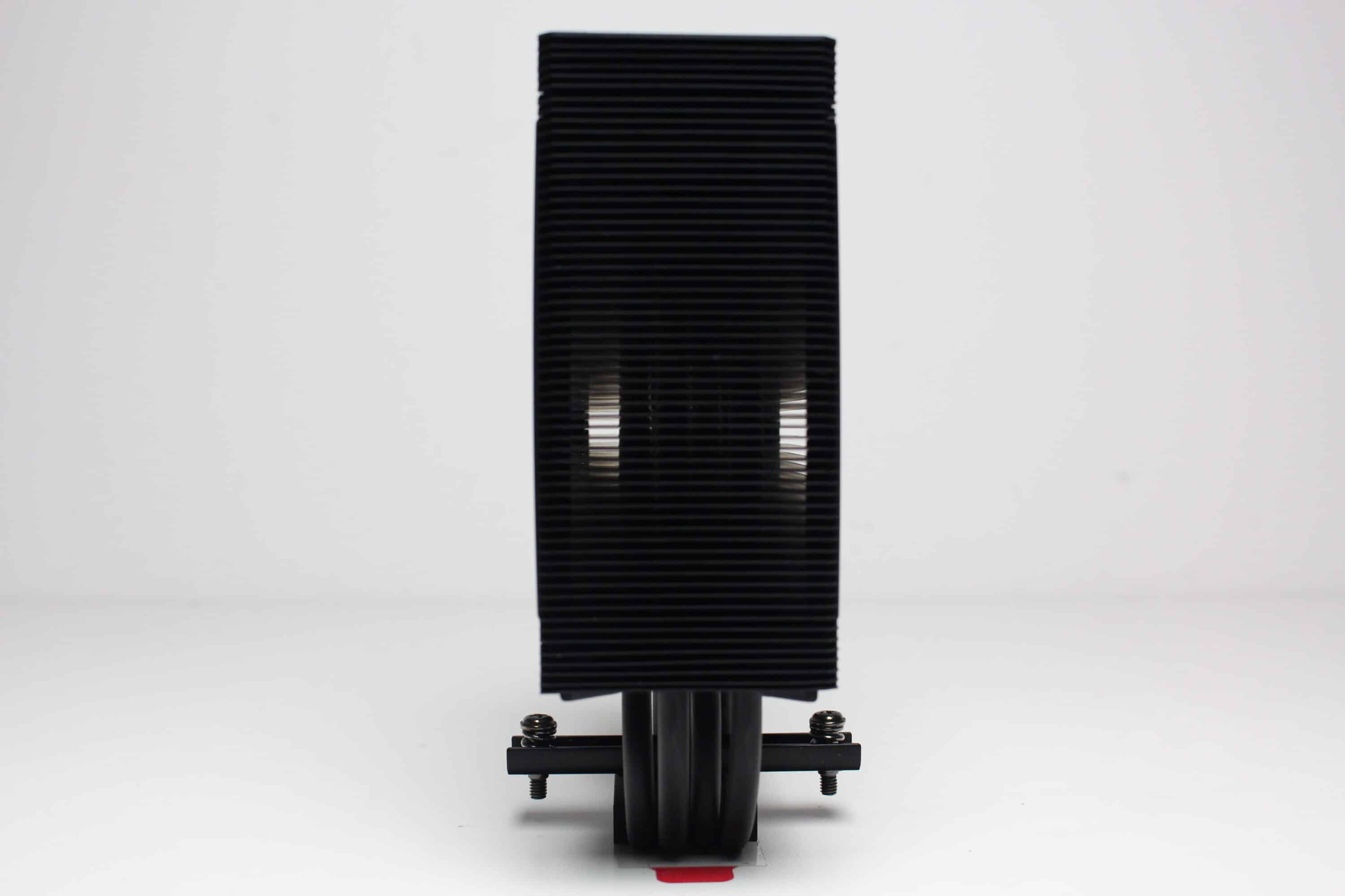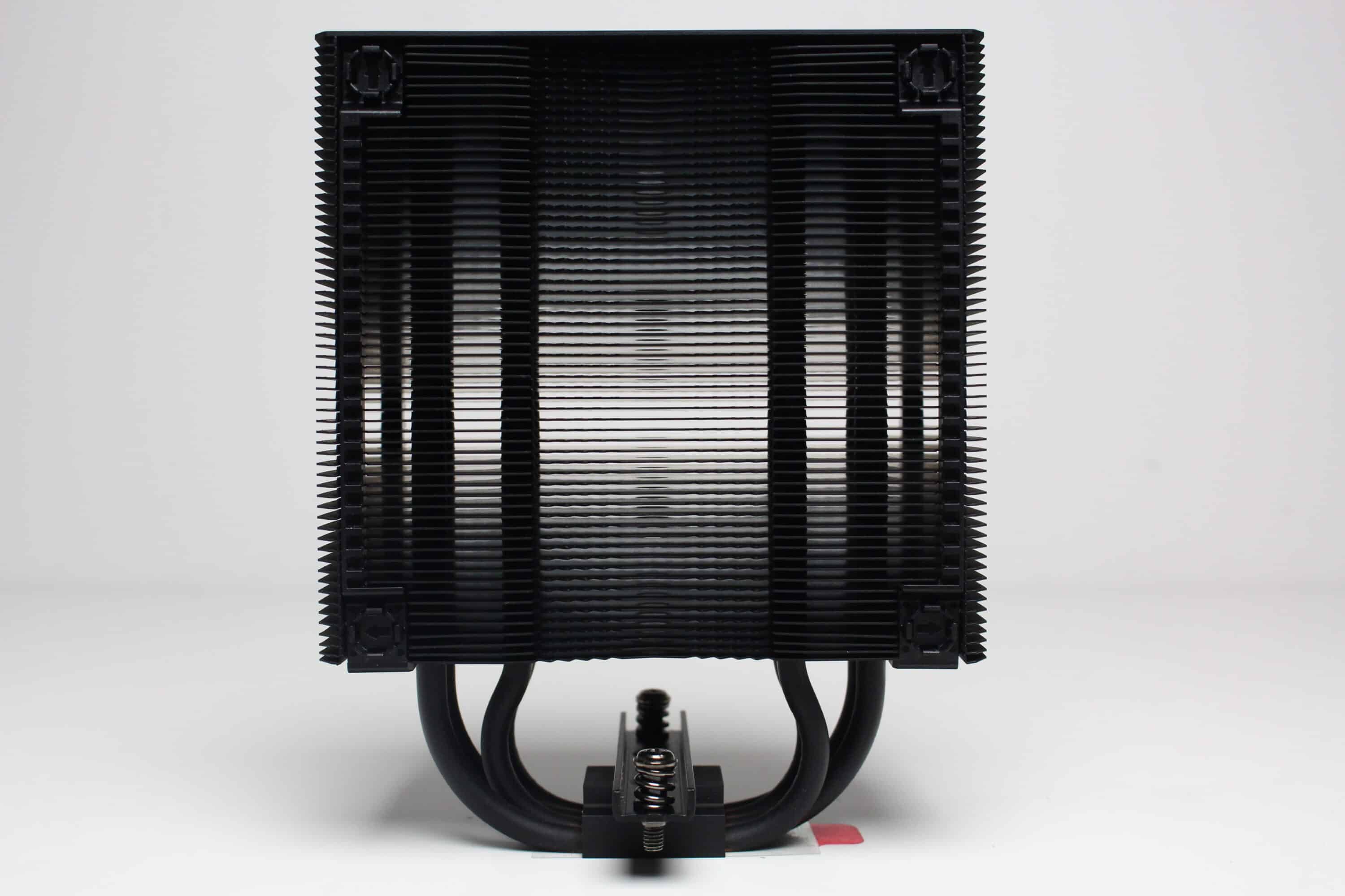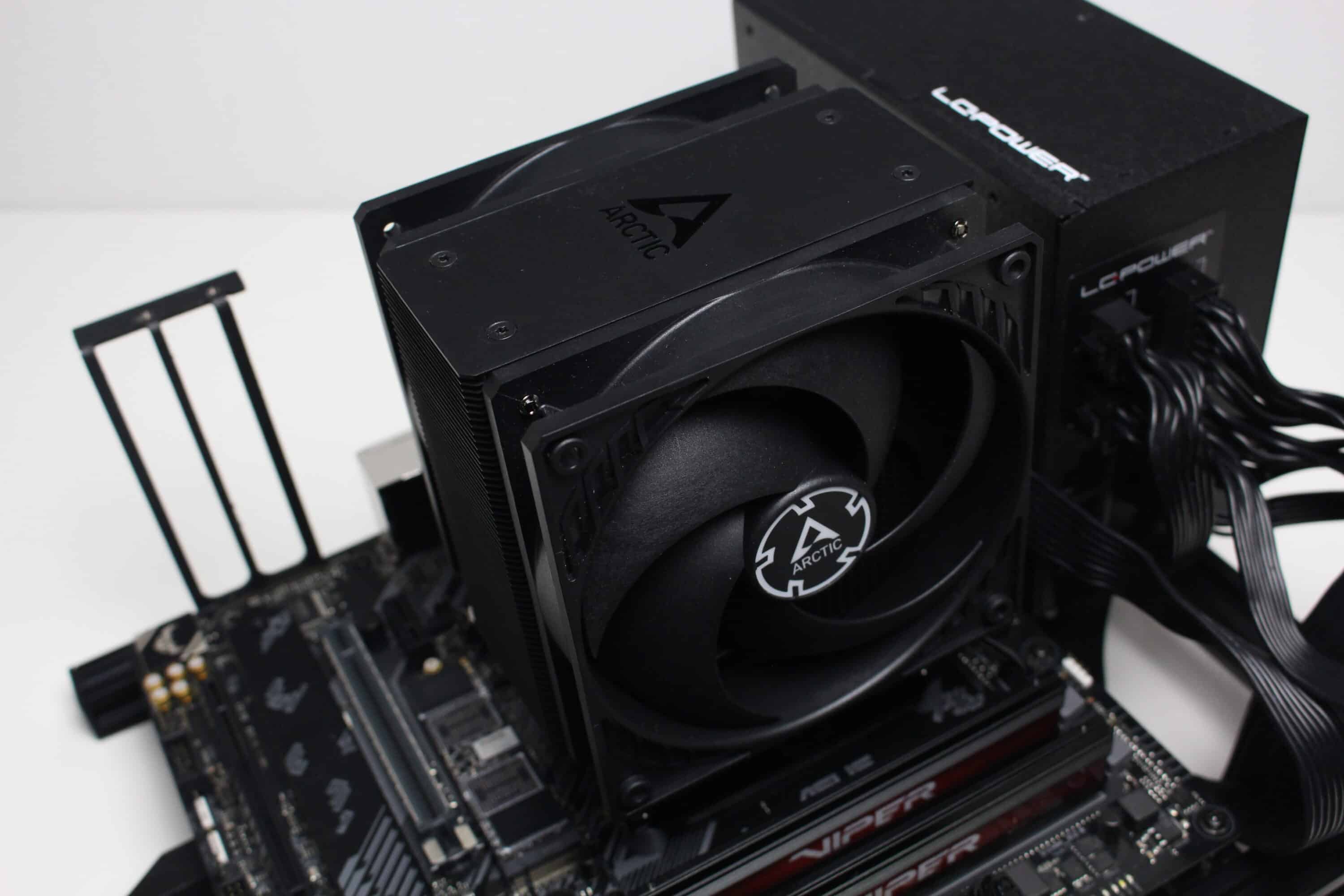 Including the fans, the Arctic Freezer 36 Black weighs 890 grams, which is a decent but not unusual weight. The general workmanship of the heatsink and the fans is of a very high standard despite the low purchase price. There were no scratches or bent fins and the base of the socket has also been properly finished and is very smooth. Thanks to its simple overall appearance, it should look very good in both black and black and white systems.