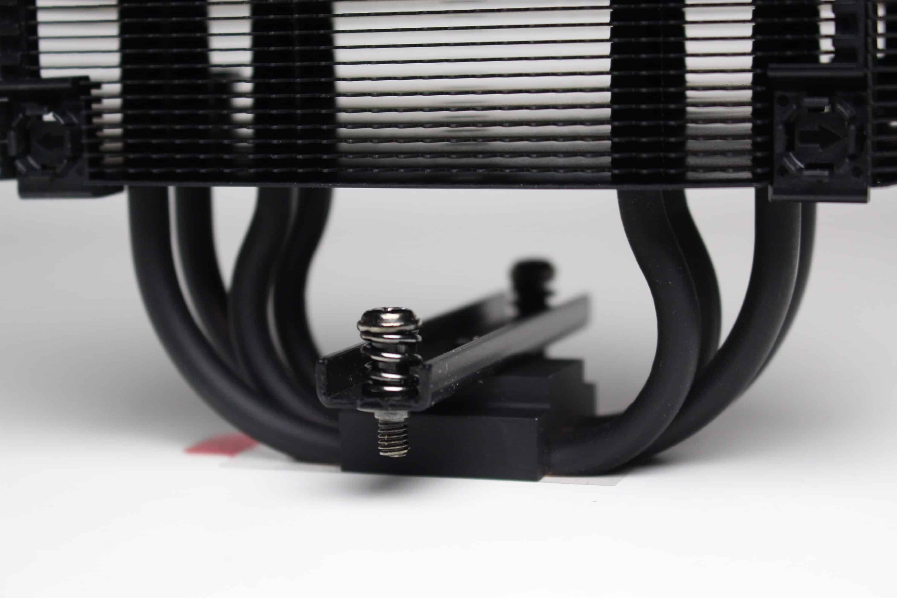 Four screws with round heads are used to attach the fans to the heat sink. These screws are used to press the fans into the corresponding plastic holders on the heat sink, where they hold very well. However, time will tell whether the plastic elements will remain functional over a longer period of time. At least Arctic has confidence in its product and provides the Freezer 36 with a six-year warranty.