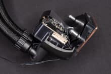In addition to the primary CPU cooling in the pump head, the Liquid Freezer III also has a revised VRM cooler (see pictures above). This 60mm fan is designed to cool the mainboard’s voltage converters at 400 to 2500 RPM. This should be particularly useful in cases with poor airflow or with overclocked components. The 40mm VRM cooler of the Liquid Freezer II still performed its work at 1000 to 3000 RPM.