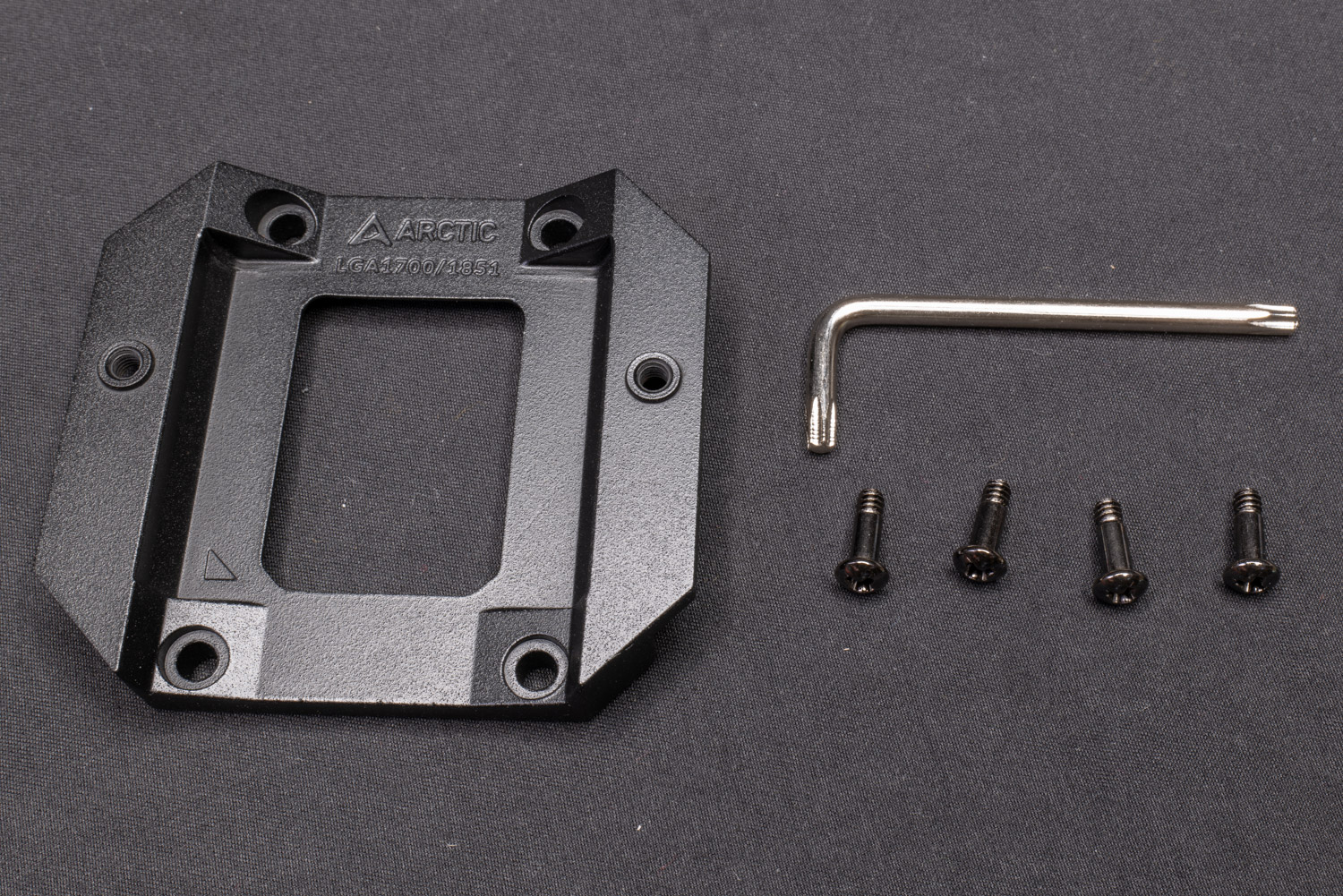 For Intel’s LGA1700 and LGA1851 sockets, an alternative mounting frame (contact frame) is included in the scope of delivery. This is intended to replace Intel’s Independent Loading Mechanism (ILM) and thus avoid stresses and deformations that could otherwise put massive strain on the CPU. Intel itself tested the Liquid Freezer III on the i9-13900K/KF, i9-14900K/KF and i9-13900KS and confirmed the compatibility of both the cooler and the contact frame.