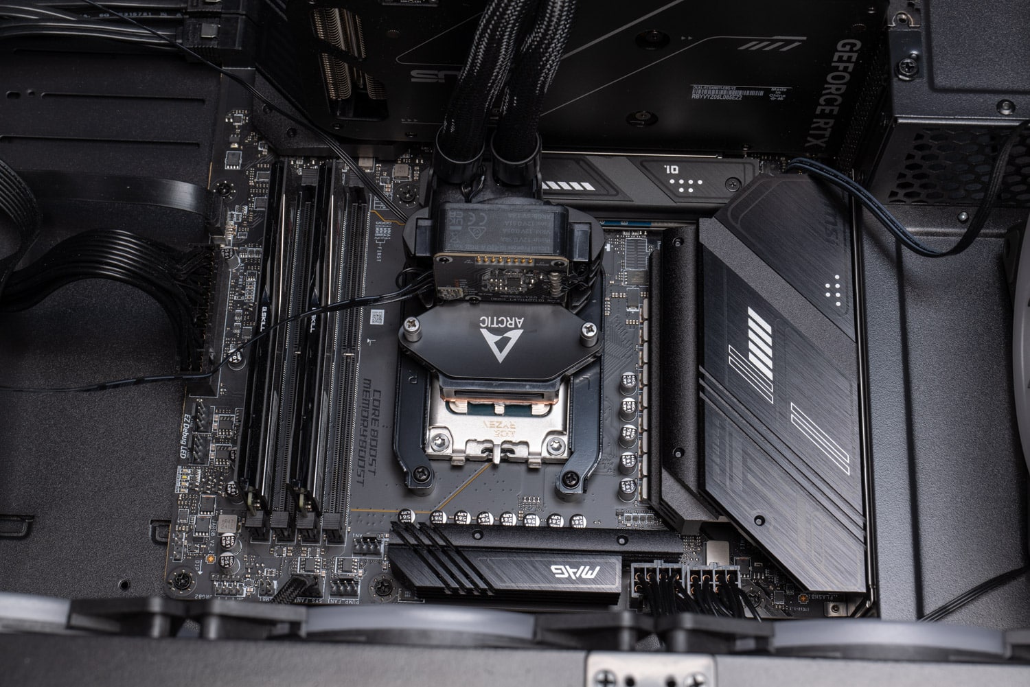 Due to the depth of the radiator including fan, it is important to ensure that the case is suitable for problem-free installation. Thanks to the interactive online instructions, installation was completed quickly with just a Phillips screwdriver after some preparation. However, changing the airflow direction beforehand increased the installation effort. The versatile A-RGB lighting worked perfectly with both MSI Mystic Light and a manual case controller.