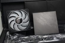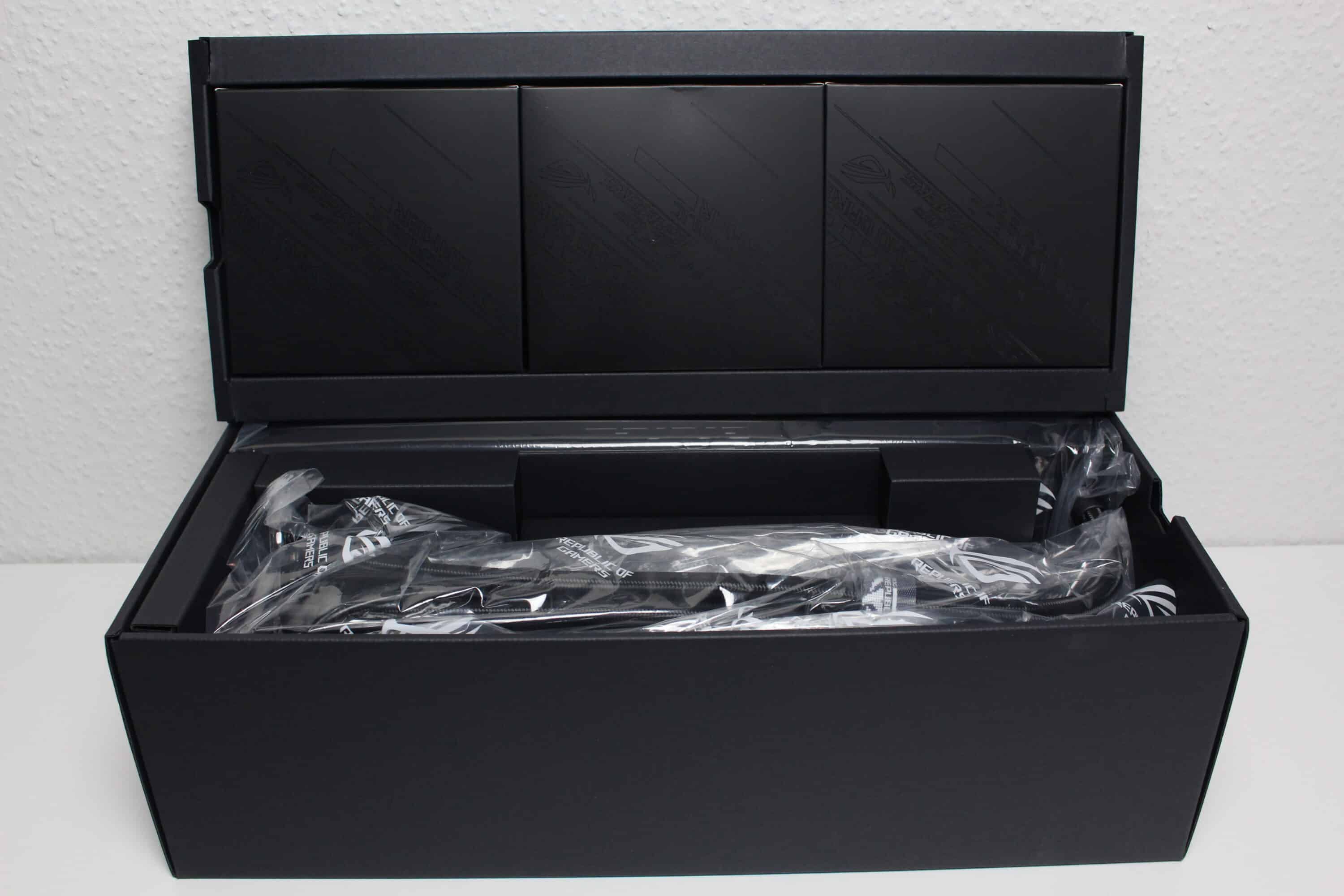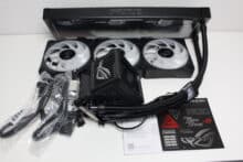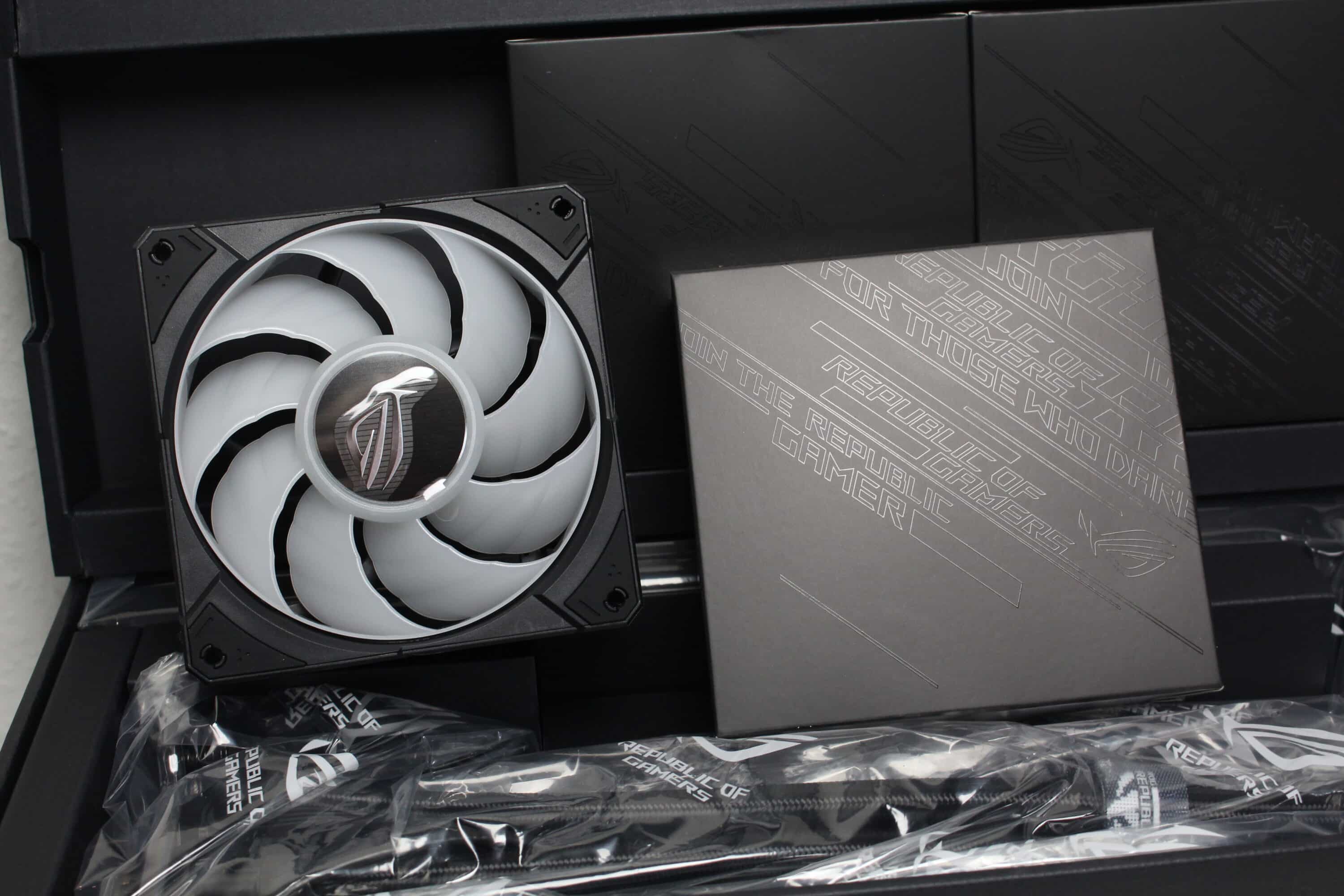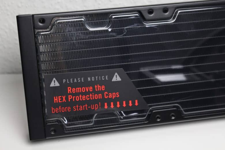 Unlike many other manufacturers, the radiator and pump are not just wrapped in a plastic film. ASUS has also placed two hard plastic covers on the radiator to prevent the fins from bending during transportation or unpacking.