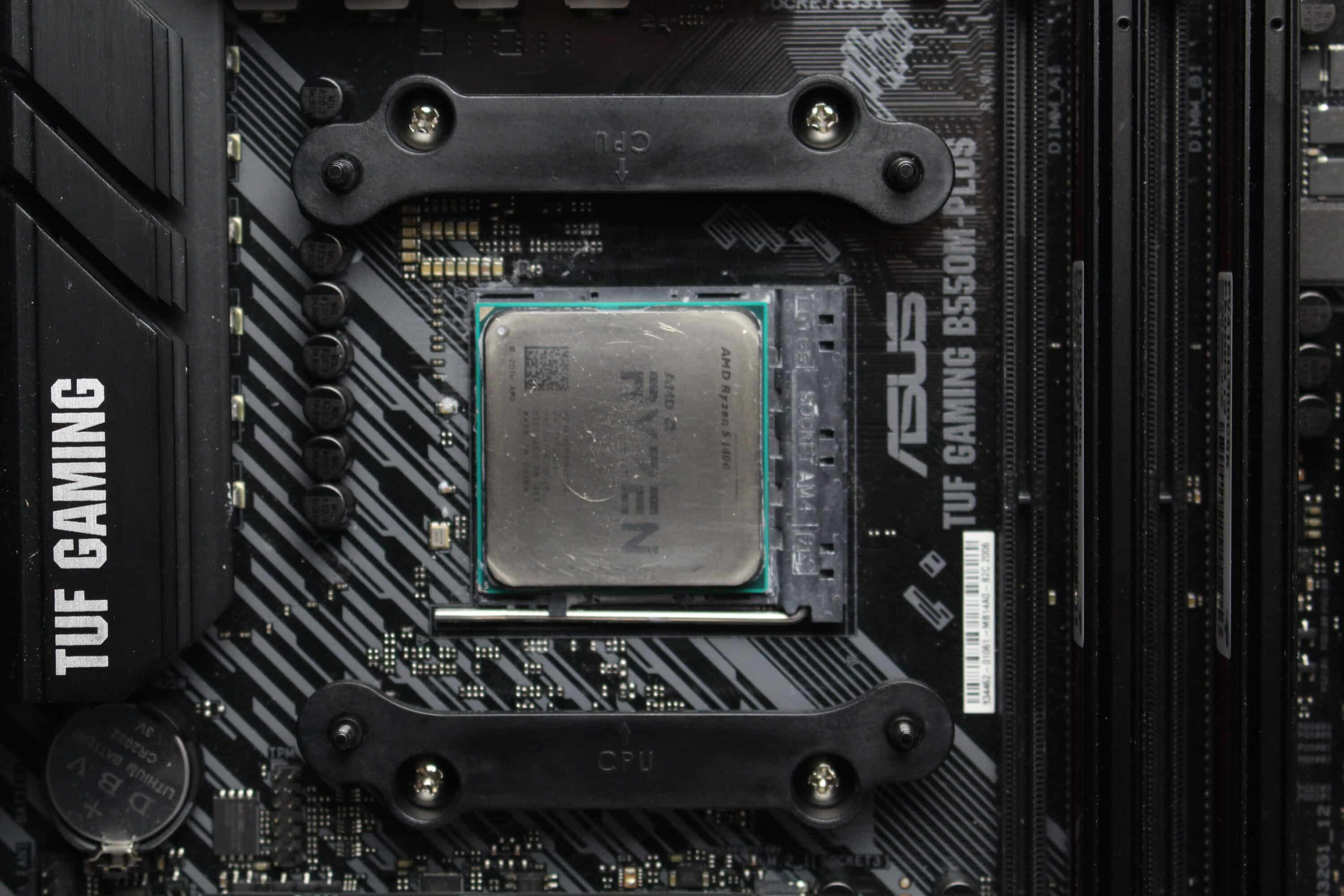 As already shown in the previous chapter, we use an AM4 system based on the Ryzen 5 1400 and the ASUS TUF Gaming B550M-Plus as test hardware. The Ryzen runs overclocked with 3.8 GHz at 1.175 V CPU voltage. To heat up the processor, we fully loaded it with Prime95 for 30 minutes per scenario (small FFTs). We then read out the temperature of the CPU with the CPUID hardware monitor and the room temperature was always around 20 °C during the measurements.