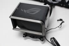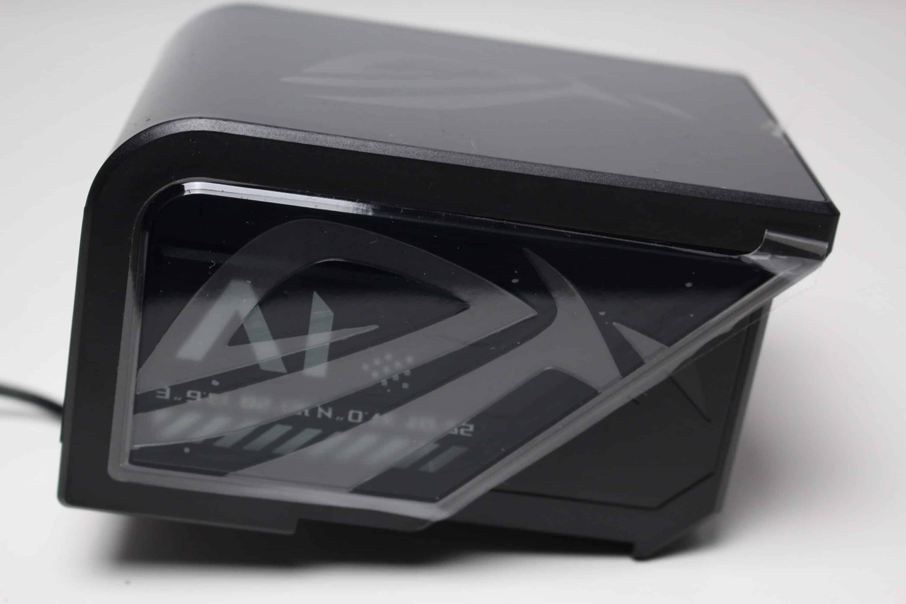 And why has ASUS added a silver frame above the pump block? This serves as a holding frame for the display block, into which a curved 6.67″ 2K AMOLED display has been incorporated. The block itself is mainly made of black plastic and the protective surface above the display is matt or has been covered with a protective film at the factory. It is mounted on the pump block using a large magnet and data is transferred via an internal USB 2.0 port.