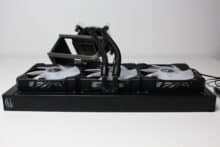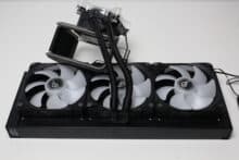 Unfortunately, despite the high purchase price, there are still some negative aspects. The short hoses ensure a clean look, but significantly restrict the mounting position, as the radiator can only be mounted in the lid. The above-average depth and width of the radiator also makes it somewhat more difficult to choose the right housing. Finally, the pump and fans are very loud when unregulated and should definitely be adjusted in the BIOS.