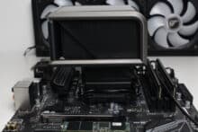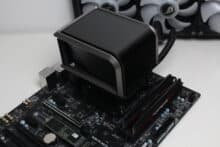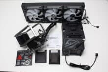 With Intel, the assembly works in a similar way. The only difference, however, is that ASUS includes a suitable backplate in the scope of delivery. The CPU block is then screwed to this backplate. The radiator of the compact water cooling system is then placed in the housing independently of the socket.