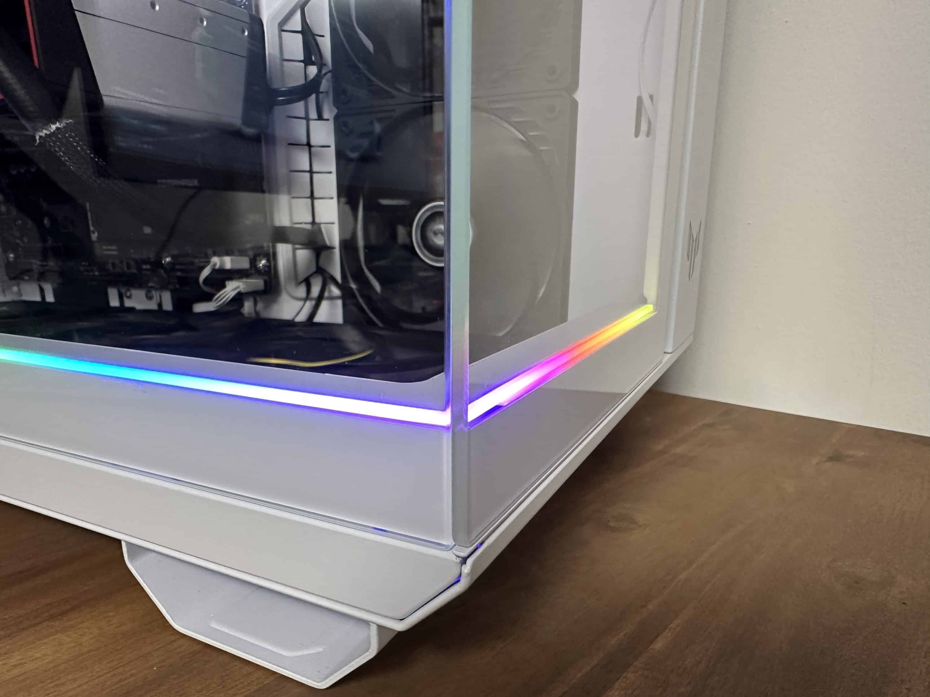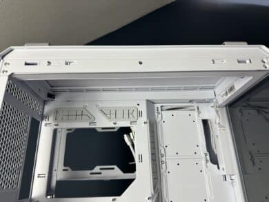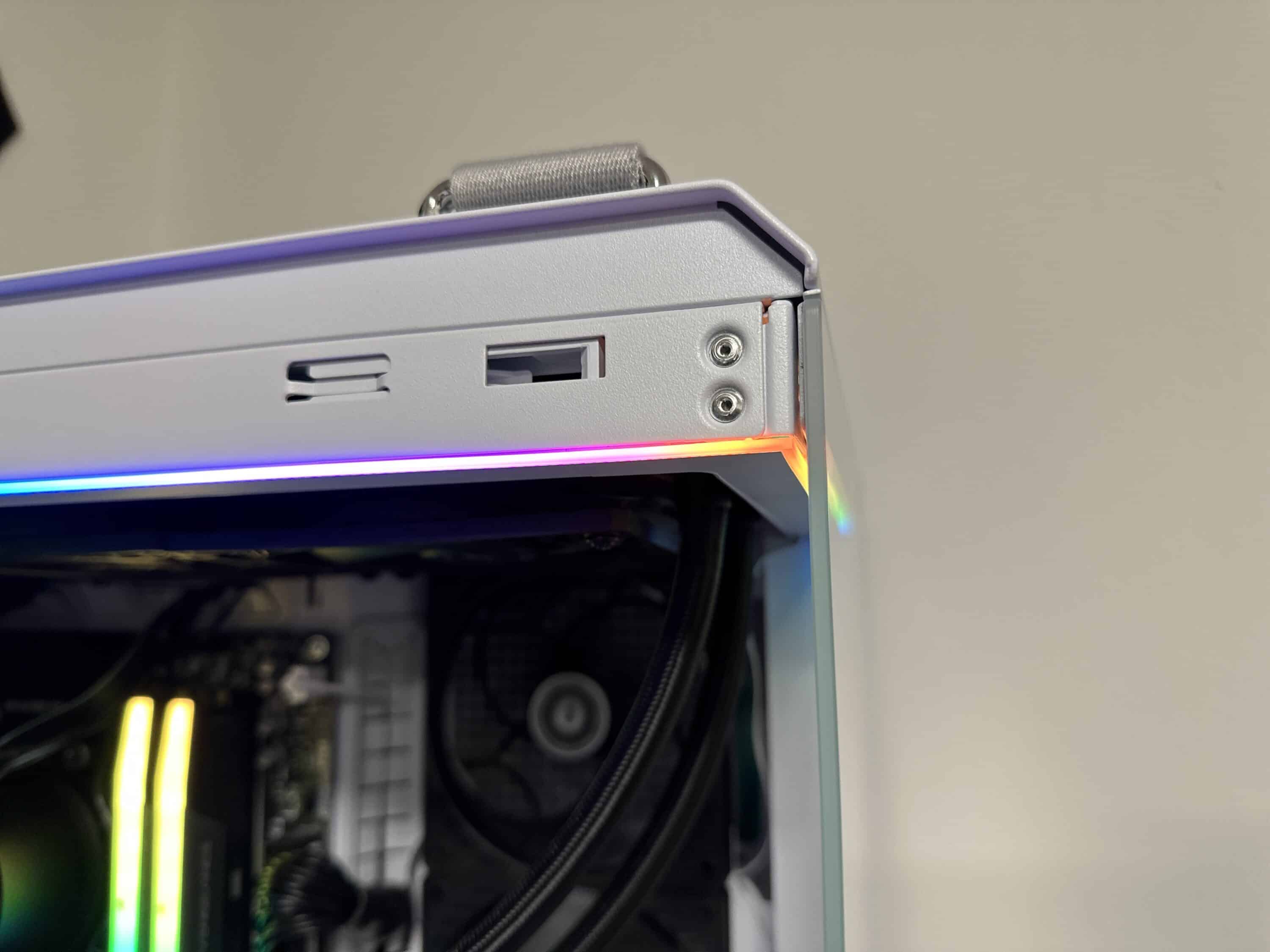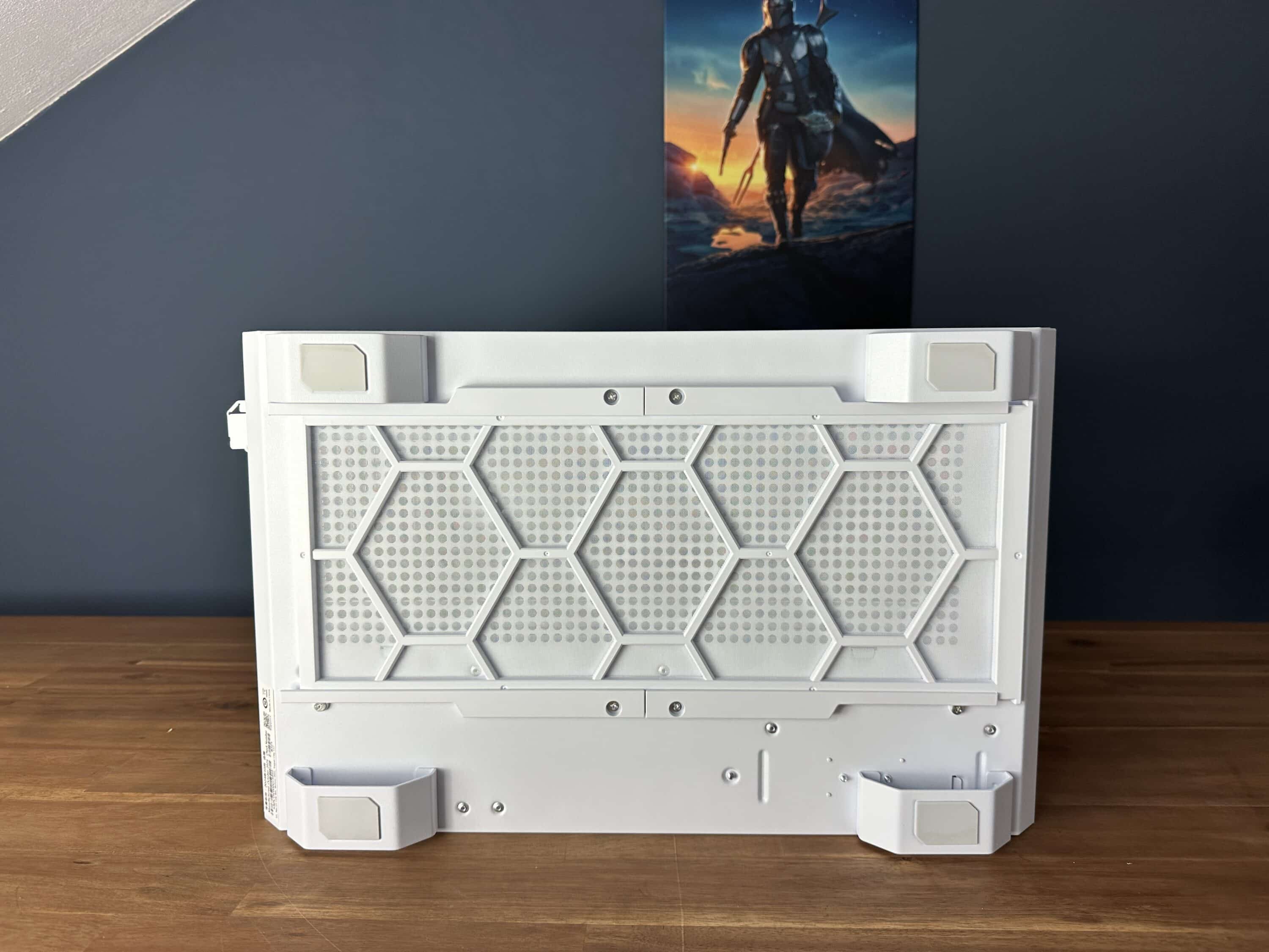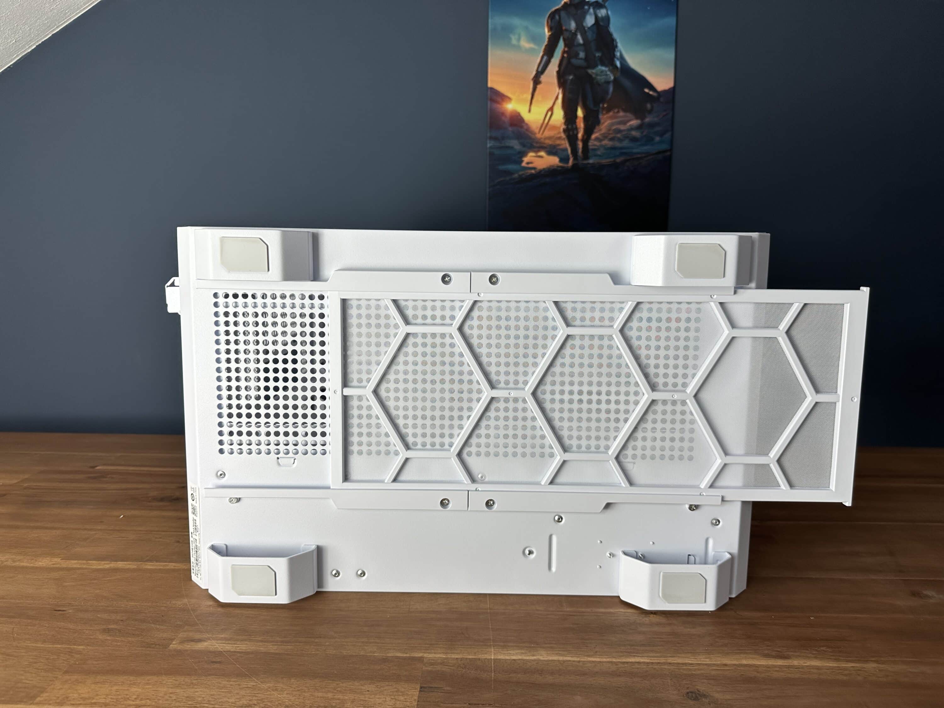 Our test model is the white version, which is particularly eye-catching. The white looks clear, almost radiant, and emphasizes the clean lines of the housing. Particularly positive: The color concept is consistent throughout all visible components – from the metal frame to the inner panels – which gives the case an all-round high-quality and stylish look.