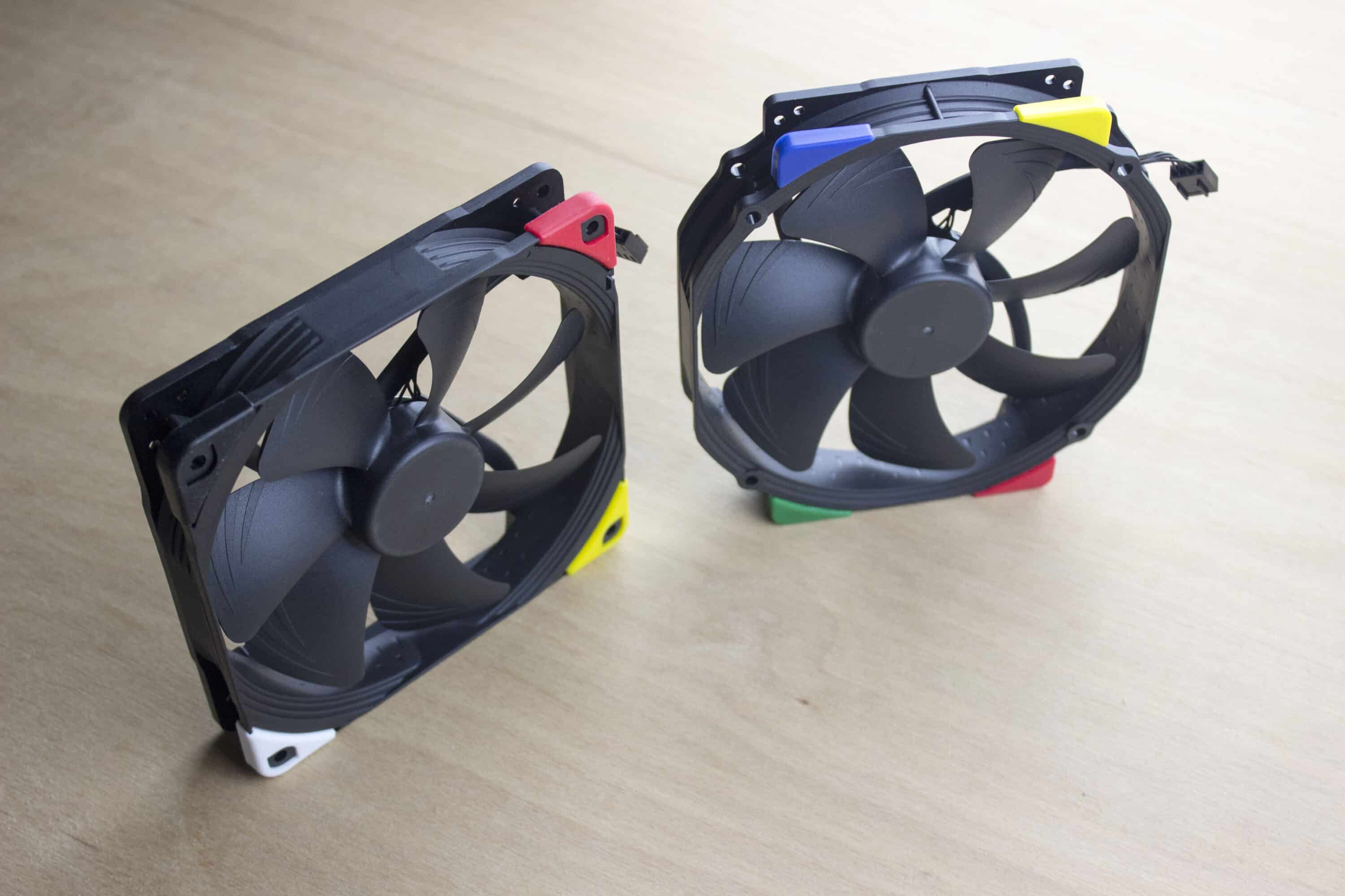 Nevertheless, there is a small point of criticism. The S12, F12 and A14 fans have only four corners in each colour. A bilateral adjustment is therefore not possible. If you wish, you can also buy the decouplers as a set.