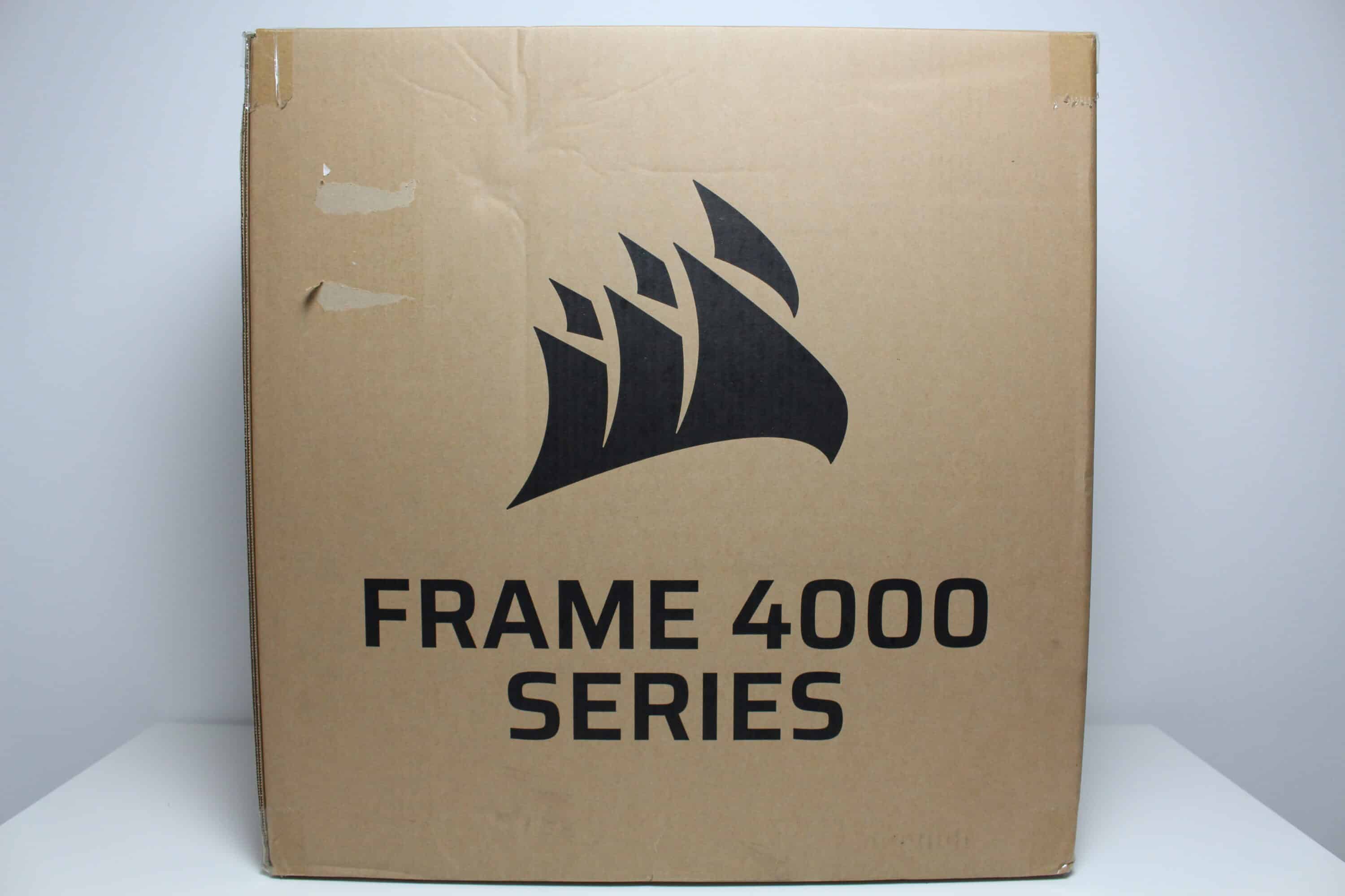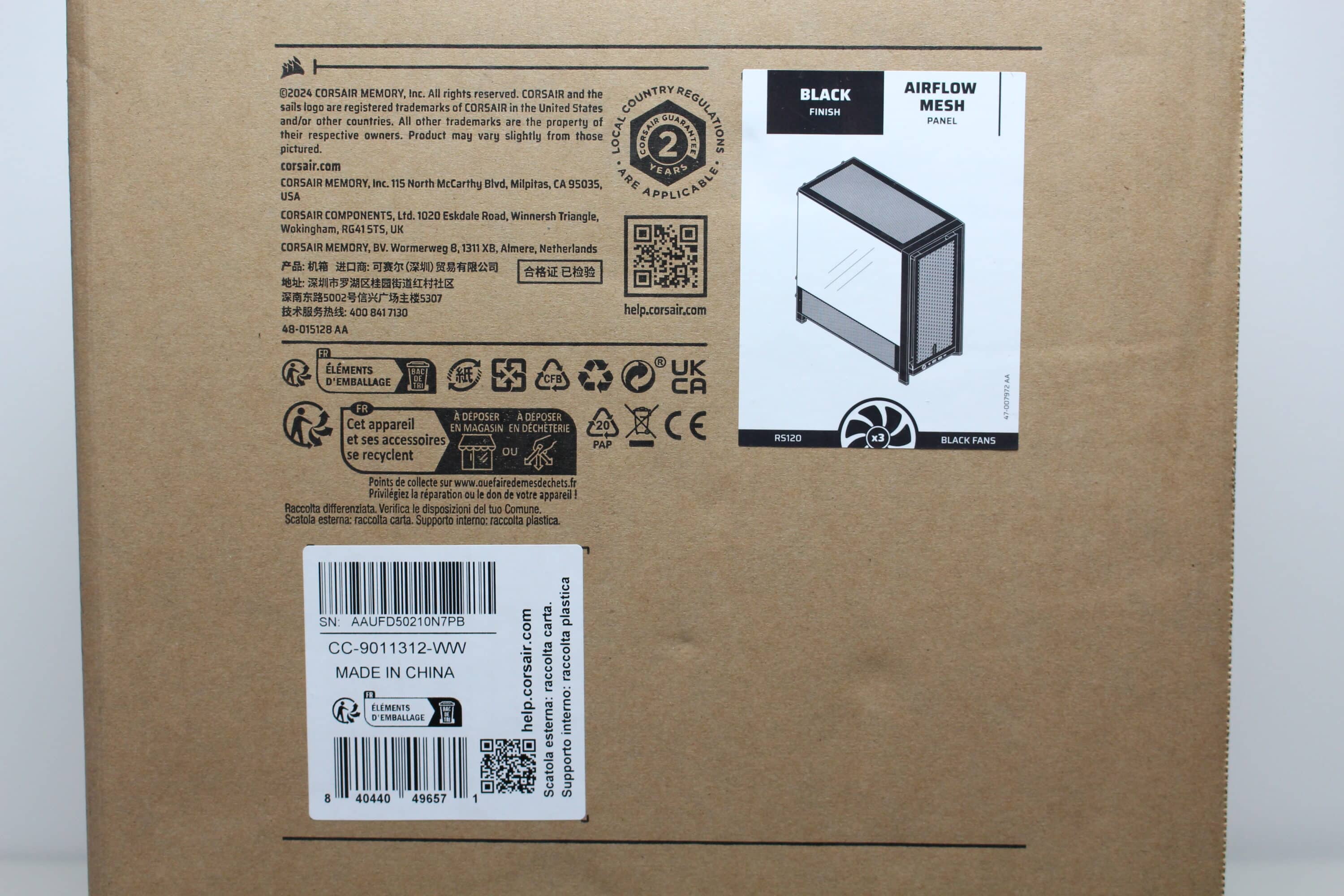 The Corsair Frame 4000D RS comes in an extremely simple brown cardboard box. Apart from the words “Frame 4000 Series”, not much else is printed on the box. However, in order to avoid buying a pig in a poke or confusion in the warehouse, Corsair has stuck a small sticker on the side of the box. This at least reveals the color and model variant of the Frame 4000D.