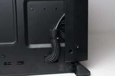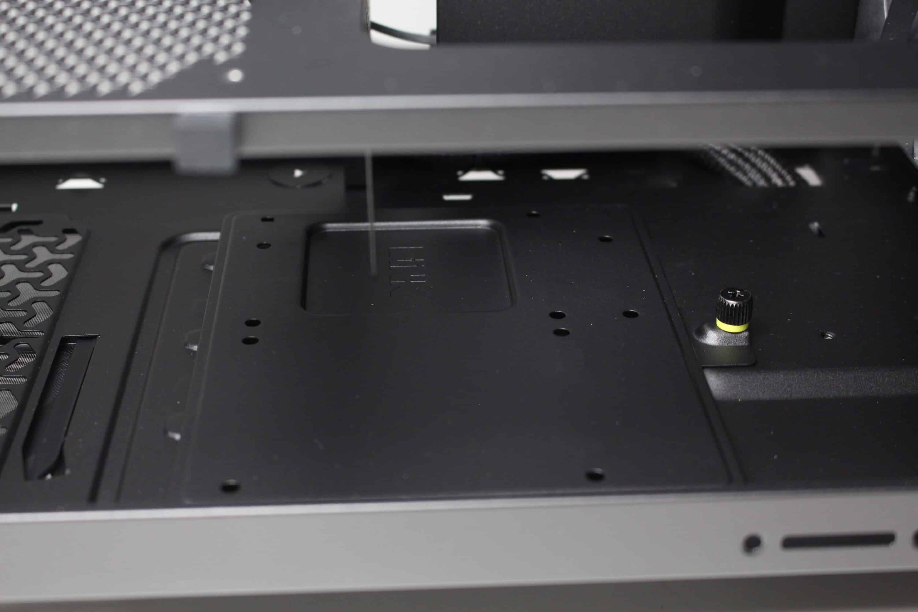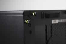 Unsurprisingly, an ATX power supply can be installed under the power supply panel. To simplify installation, there are two knurled screws on the rear of the Frame 4000D RS, which means that additional screws could theoretically be dispensed with when mounting the power supply unit. Corsair has also placed two rubber buffers on the base to decouple the power supply unit.