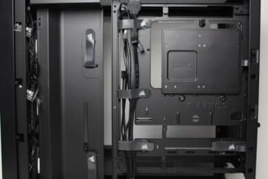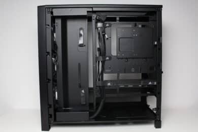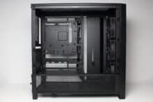 In terms of general hardware compatibility, the Corsair Frame 4000D RS is definitely impressive. Up to 170 millimeters of space is available for air coolers and up to 430 millimeters for graphics cards. If a hard disk is installed in the base, the power supply unit can still be up to 220 millimetres long. Thanks to the Infinirail system, a 360 mm or 280 mm radiator can also be installed in three places inside (two of them simultaneously). All in all, hardly any wishes should remain unfulfilled.