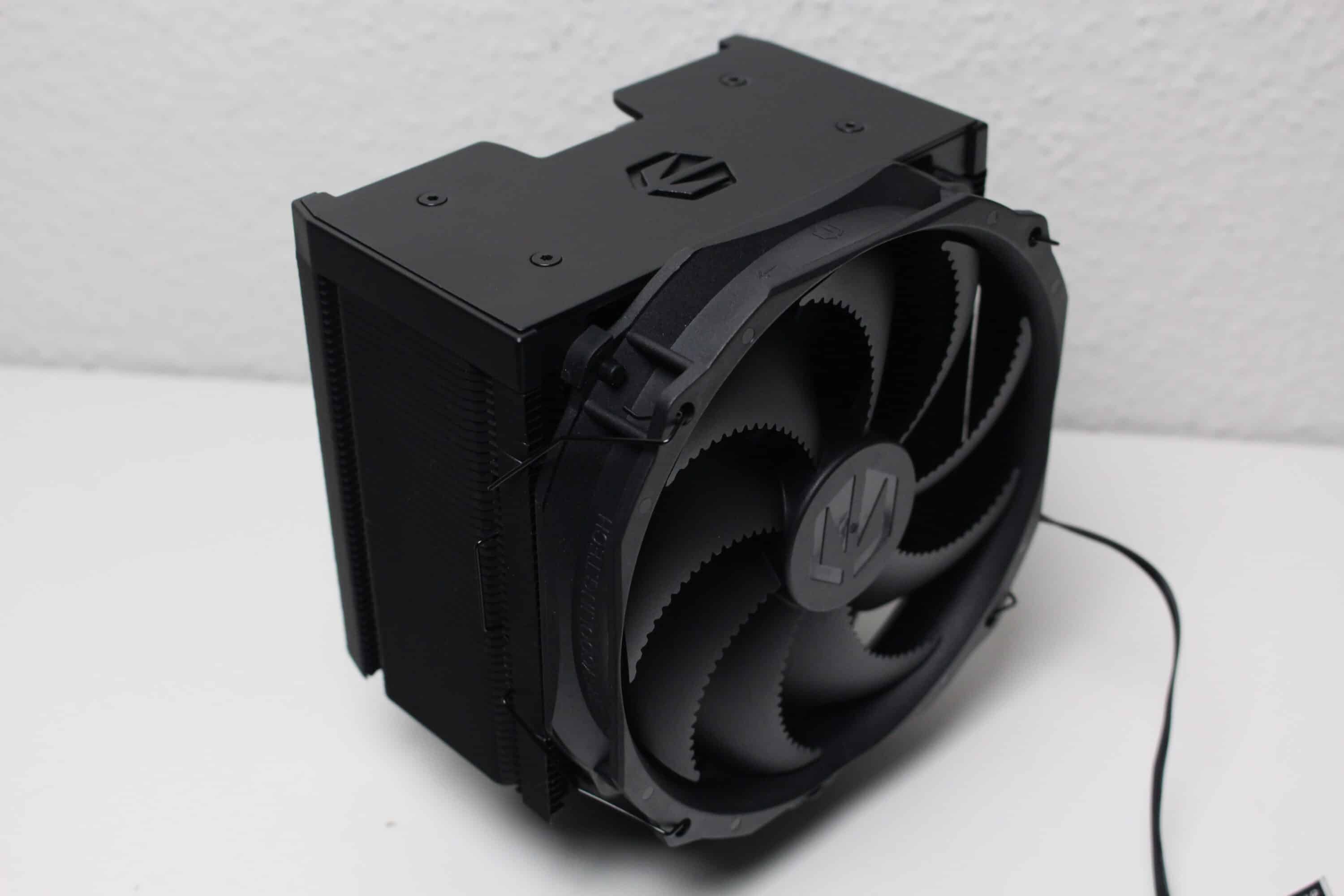 The noise level of the Fortis 5 Black is highly commendable. Even at maximum speed, the fan is audible but not particularly annoying. Below 1000 revolutions it is barely audible and at less than 600 revolutions it is no longer audible at all. Depending on the CPU installed, it should be possible to create a silent system with the ENDORFY Fortis 5 Black.