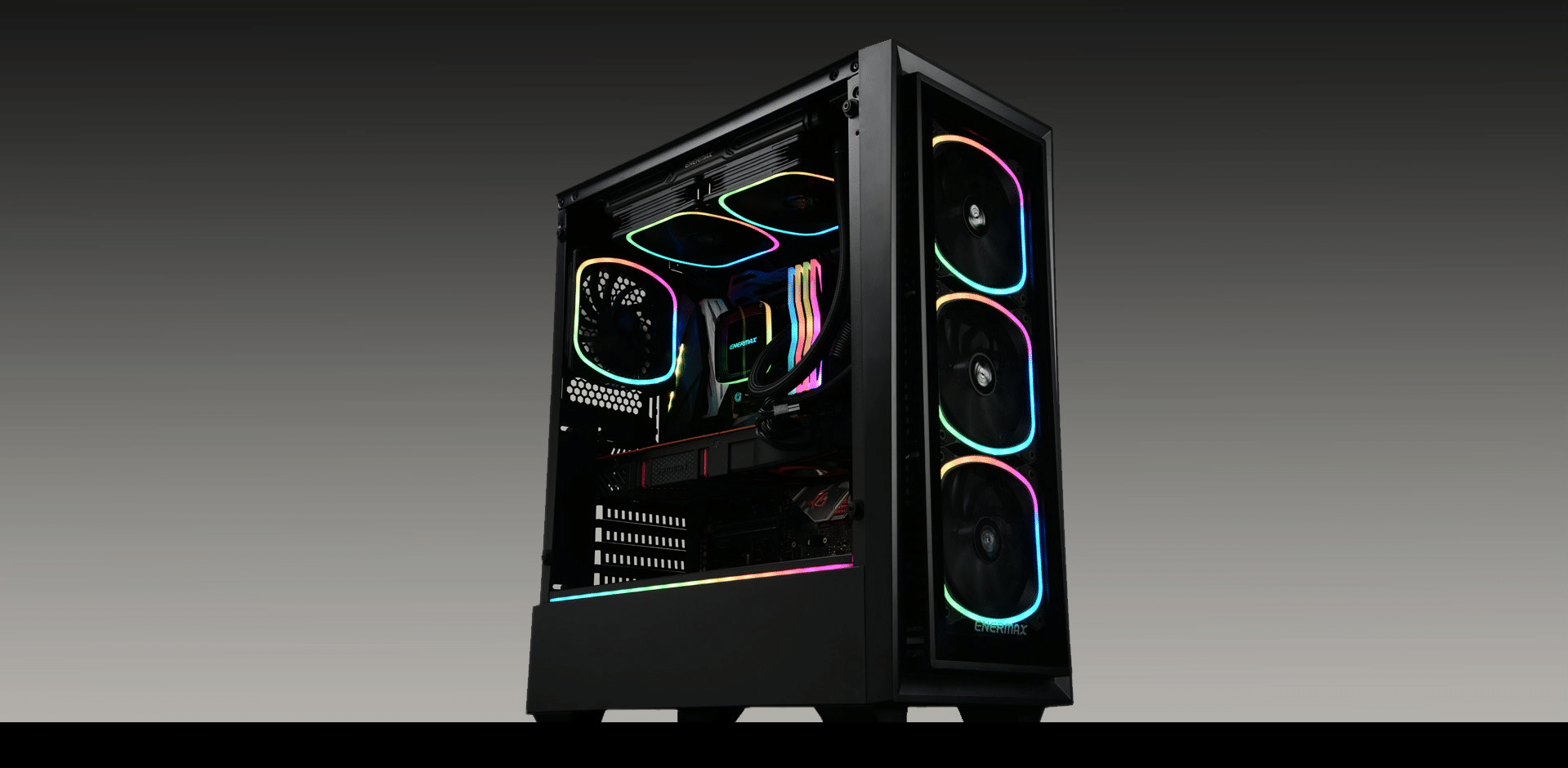 Optically the housing is very well done and looks very chic due to the RGB illumination, especially when the Enermax AquaFusion complete water cooling* is mounted. The lighting can be personalised and switched off if required. The case is not silent due to the not controllable fans, but it is not really loud either.