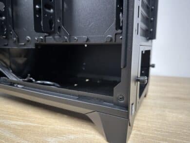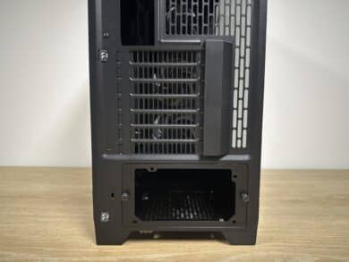 The base of the case is largely closed, but allows air to enter the power supply unit through a generously dimensioned grille. This is protected by a removable dust filter, which can be easily removed for cleaning.