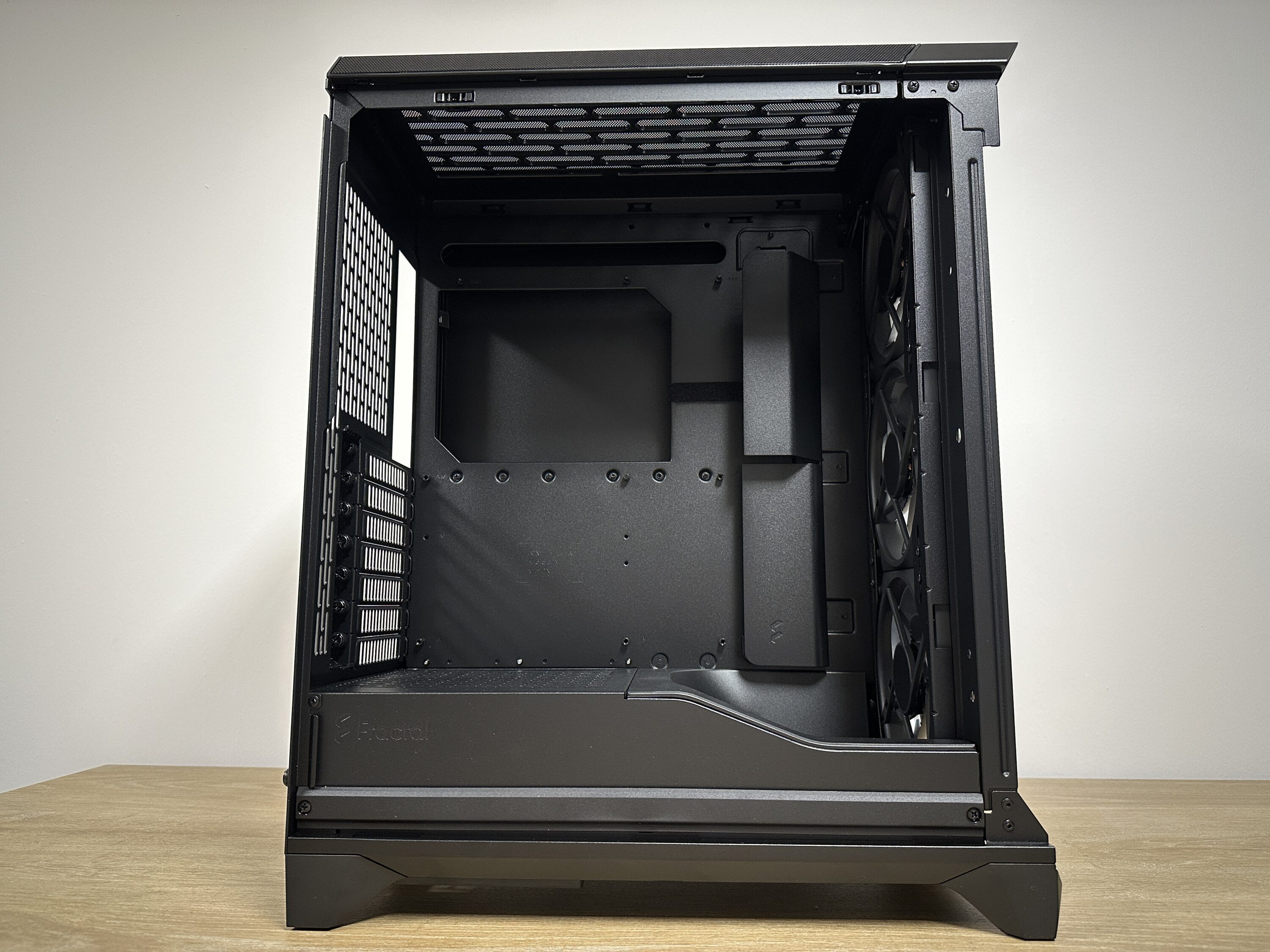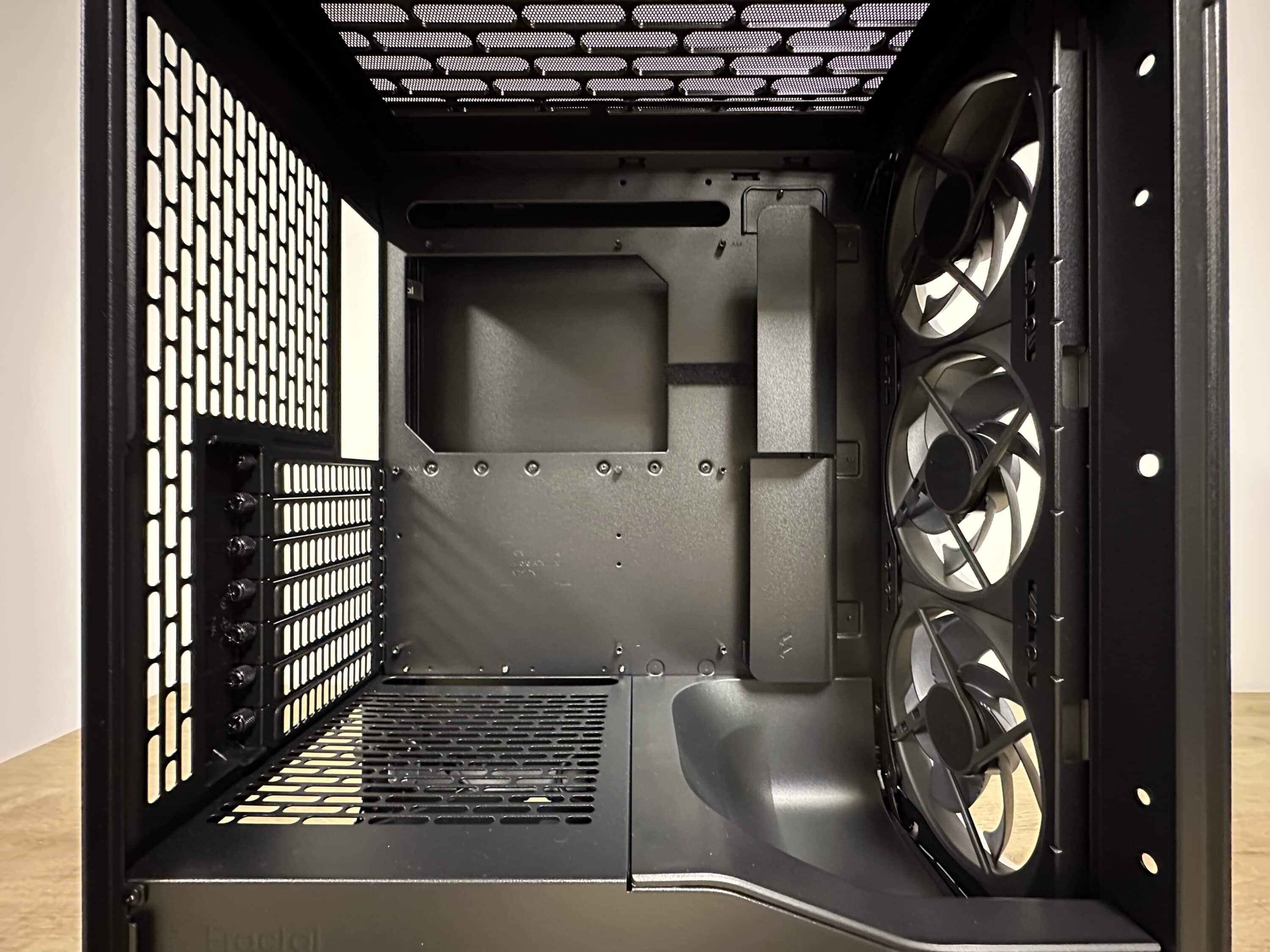A special highlight inside is the layout optimized for cooling: The airflow concept is based on a light trough in the lower area, which directs the airflow of the front fans upwards – directly towards the graphics card. This design principle is already familiar from other Fractal models and ensures a more efficient supply of fresh air, especially for systems with heavy GPU loads.