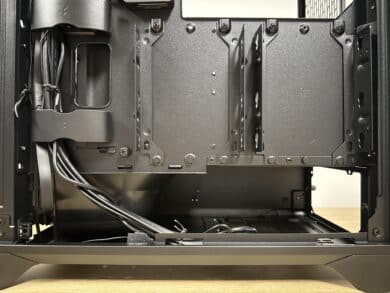 The power supply unit was also easy to install from the rear – and even easy to prepare thanks to the mounting frame. Cabling was quick and easy thanks to the generous cable ducts and mounting options at the rear. Even when the system was fully equipped with several SSDs, an RGB controller and fan cabling, the interior remained tidy and free of annoying cable clutter.