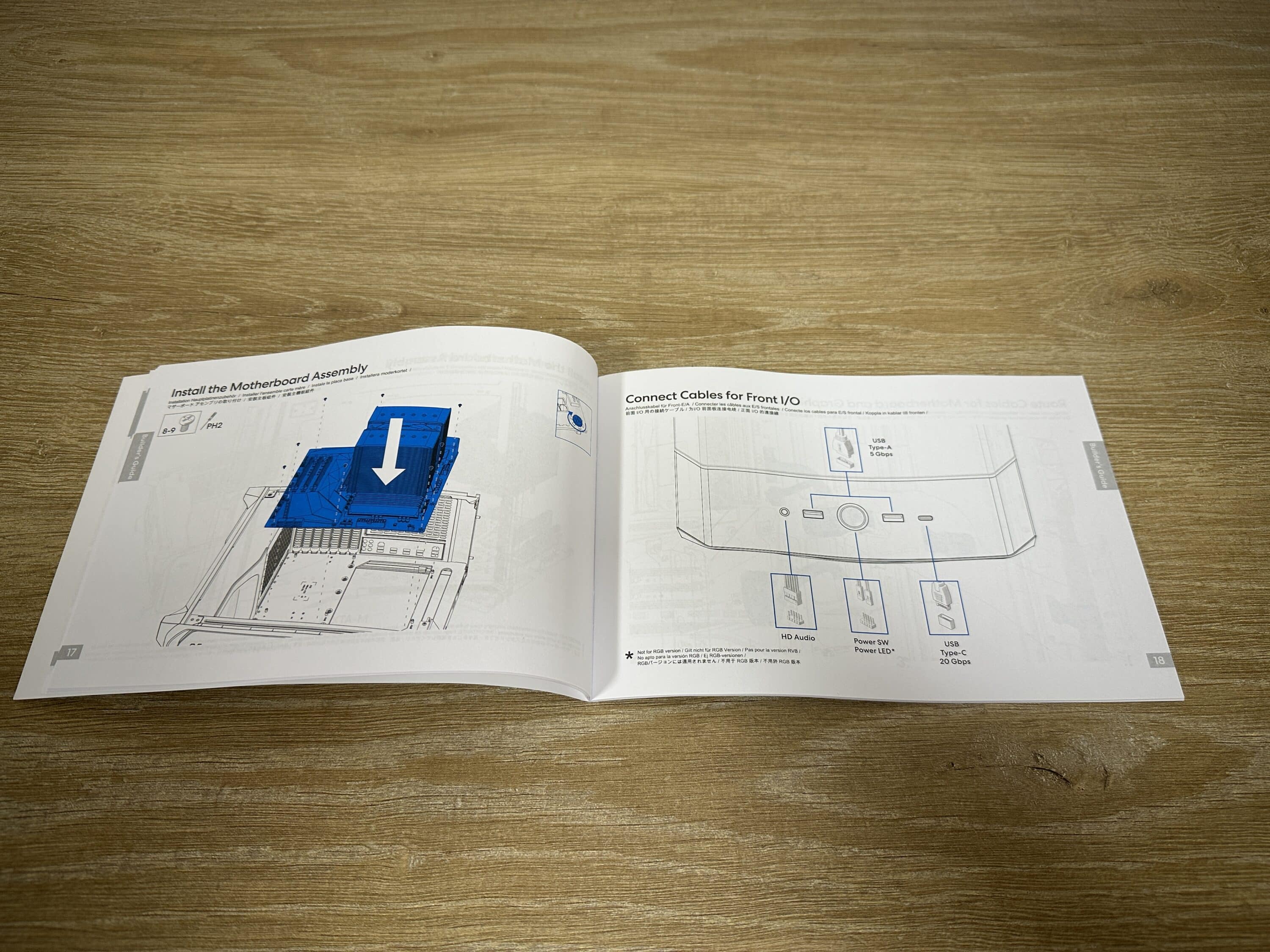 The scope of delivery is rounded off by clearly designed and illustrated installation instructions. This not only guides you through the basic installation of the hardware, but also explains key features such as drive installation, access to hidden cable paths and the use of the RGB system.
