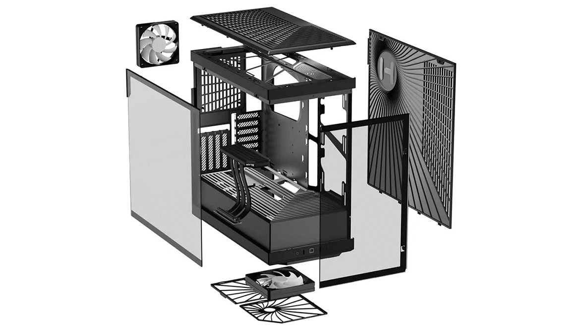 If you choose the HYTE Y40, we recommend to use two intake fans in the area next to the motherboard tray. The fan in the bottom will most likely not manage to sufficiently cool a GPU with higher power consumption due to the rather restrictive design of the PSU cover.