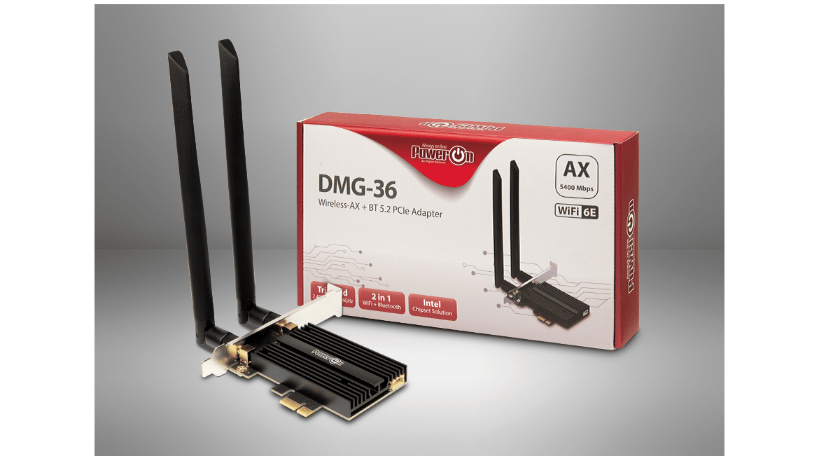 The Inter-Tech PowerOn DMG-36 relies on the Intel AX210 network adapter and thus supports all WLAN and Bluetooth standards including Wi-Fi 6E and Bluetooth 5.2. The overall package is rounded off by easy installation as well as the chic, black look.